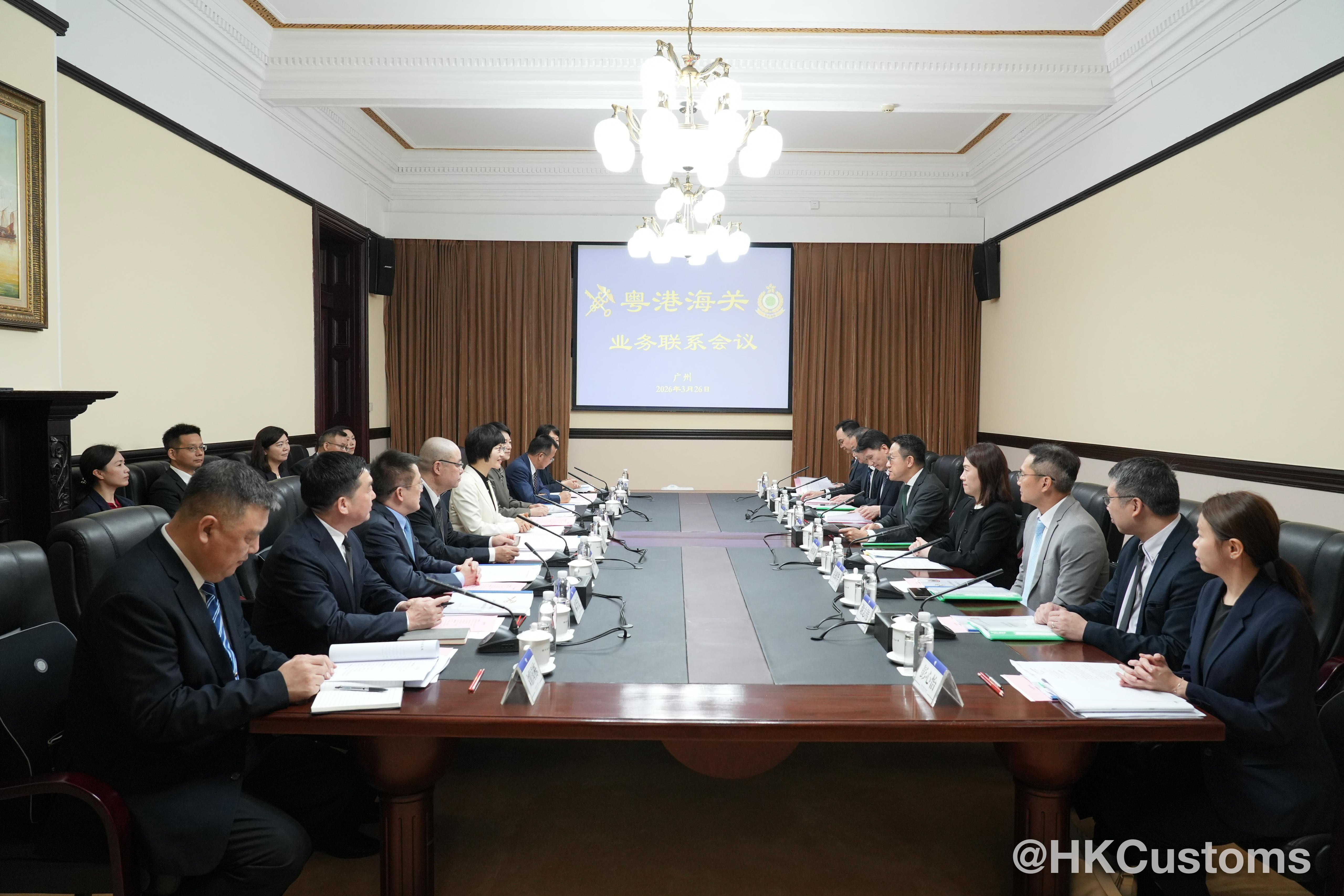 香港海關關長陳子達和國家海關總署廣東分署主任張格萍於三月二十六日分別率領代表團出席在廣州舉行的二○二六年粵港海關業務聯繫會議。