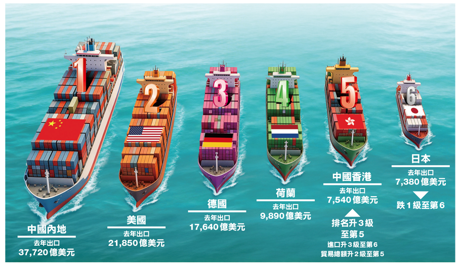 出口值進口值排名均跳三級