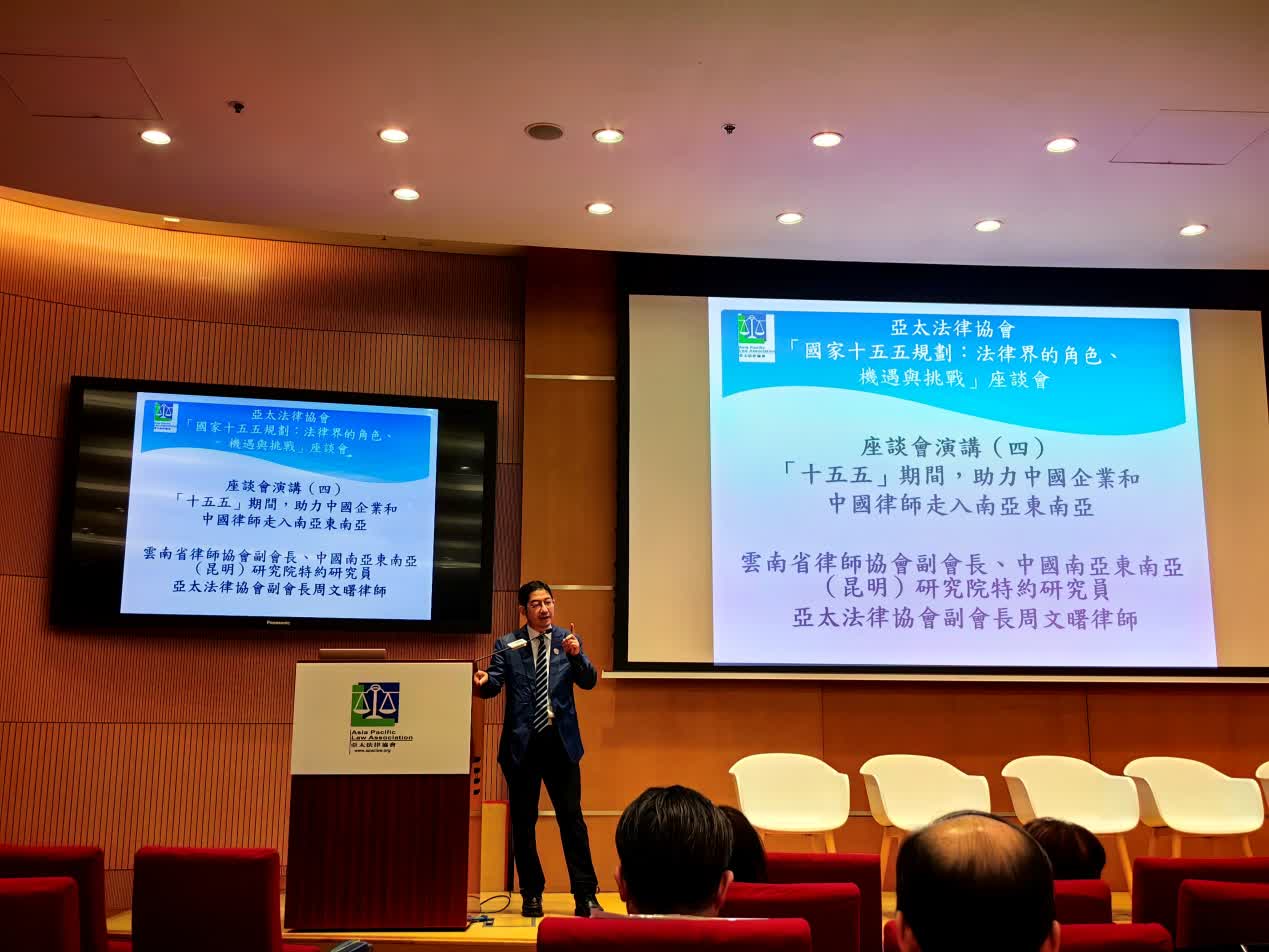 亞太法律協會副會長、雲南省律師協會副會長、中國南亞東南亞(昆明)研究院特約研究員周文曙律師作為演講嘉賓,發表了題為「中國『十五五』國家規劃助力中國企業和中國律師走入南亞東南亞及海外」的主題演講。他從五年規劃的歷史脈絡、中國與南亞東南亞的深厚淵源,以及法律服務業的發展機遇等角度,系統闡述了「十五五」規劃對中國企業和律師「走出去」的賦能作用。