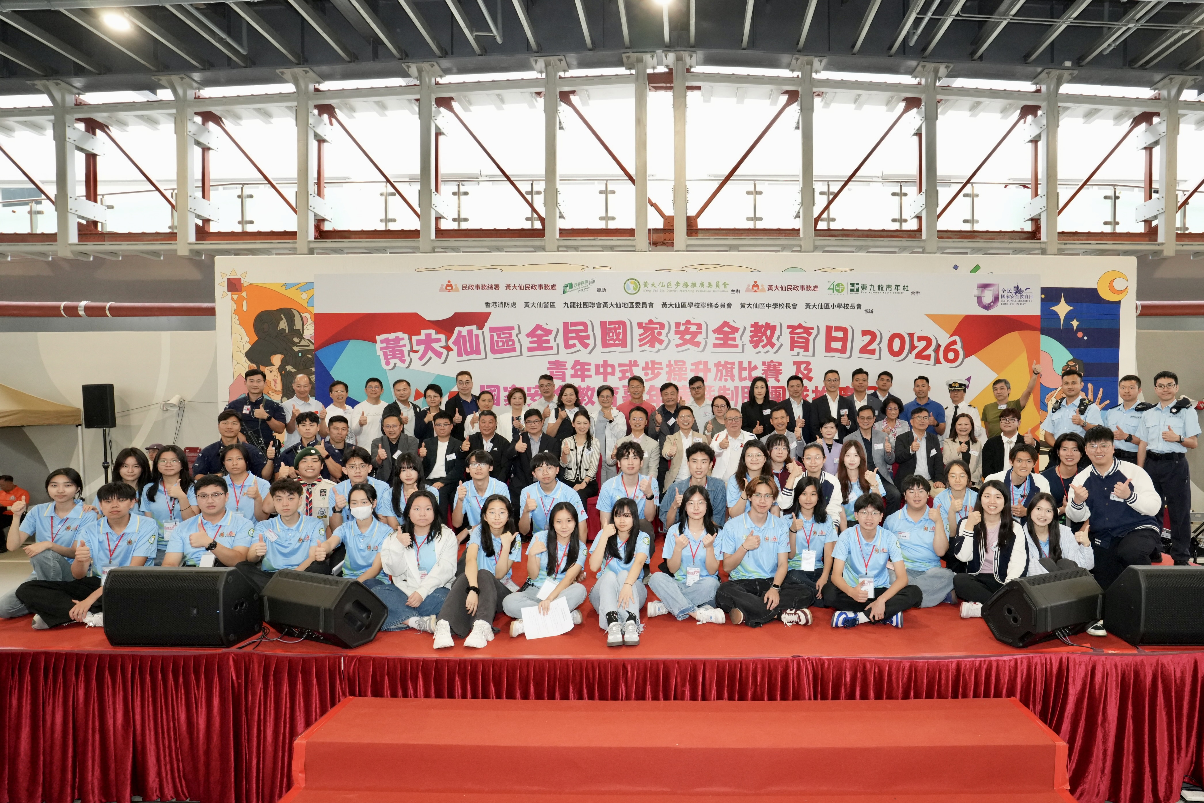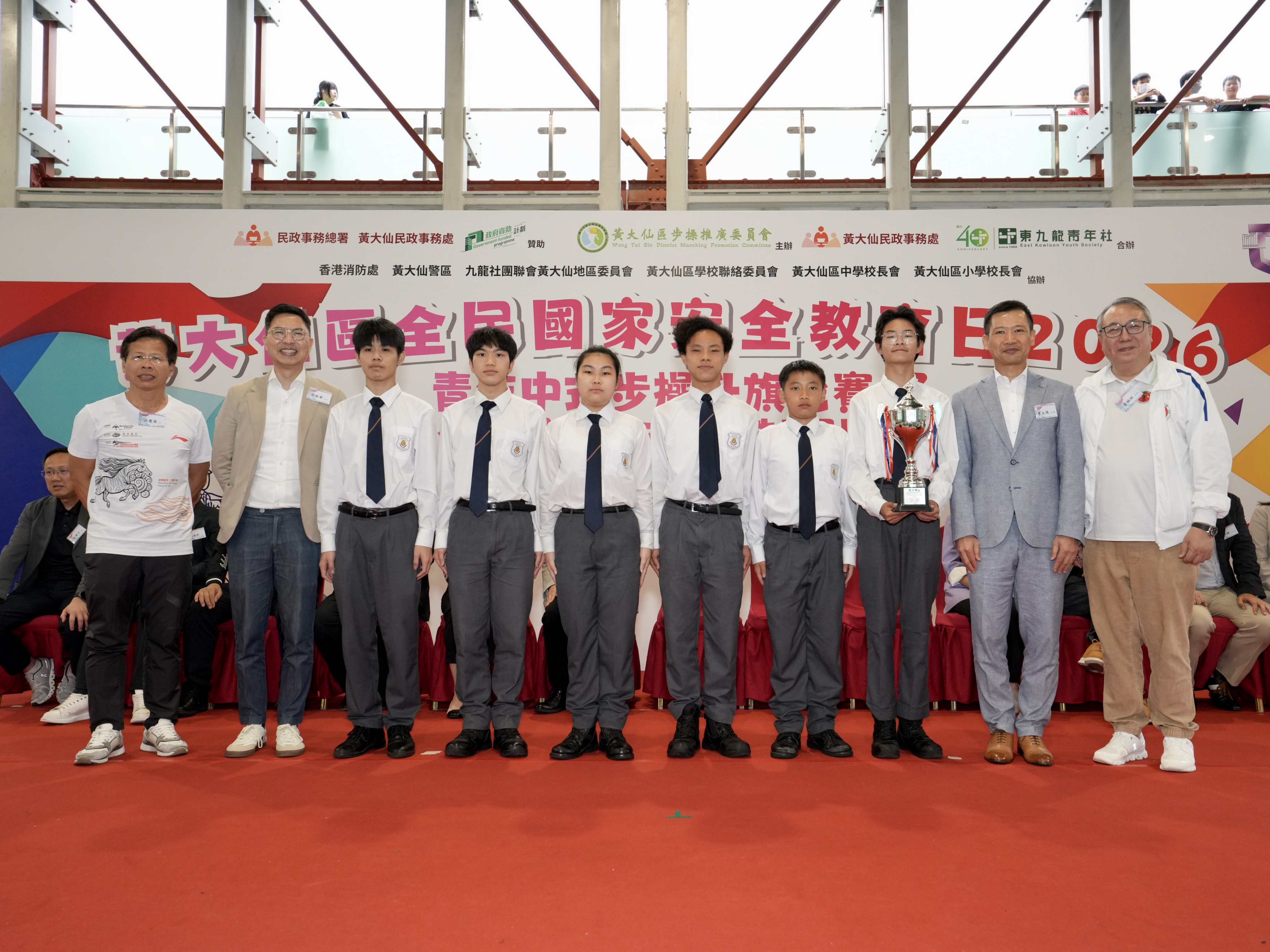 黃大仙民政事務專員胡鉅華,中央政府駐港聯絡辦九龍工作部處長何小松,立法會議員洪錦鉉,消防處九龍總區助理處長曾永鴻,警務處東九龍總區指揮官謝翠恩,黃大仙警區副指揮官沈靜芬,康文署黃大仙區副康樂事務經理梁耀南,黃大仙區中學校長會主席李宛儀,黃大仙區小學校長會主席林偉才,九龍社團聯會黃大仙地區委員會主任何漢文,黃大仙區步操推廣委員會主席黃錦財、執行委員會召集人李德康、司庫楊諾軒、委員莫仲輝及東九龍青年社社長馮錦濠擔任比賽頒獎嘉賓,共同見證黃大仙區青少年的茁壯成長。