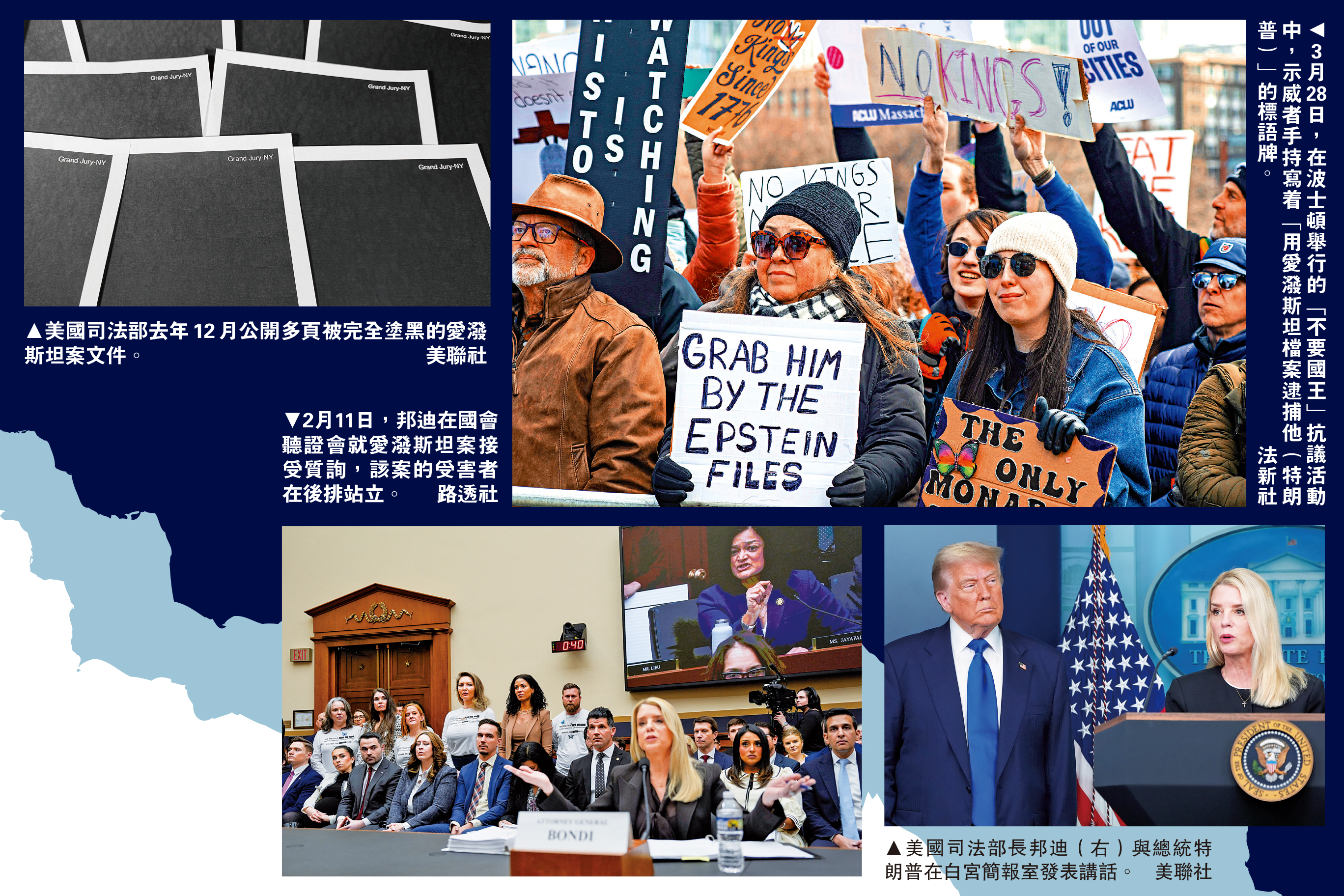 特朗普在2024年競選時承諾公布愛潑斯坦案文件。邦迪去年2月上任後很快策劃了一場活動,將所謂「第一批愛潑斯坦檔案」裝訂成冊,在白宮分發給保守派網紅。邦迪同月受訪時聲稱,有一份「愛潑斯坦客戶名單」已擺在她桌上待審。