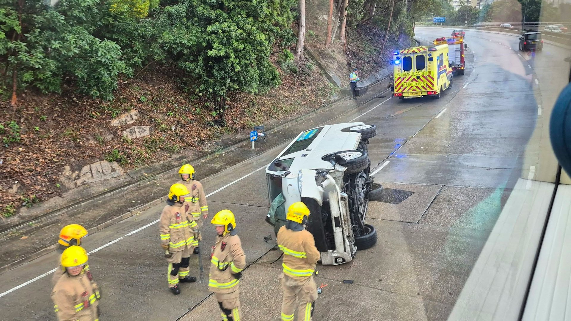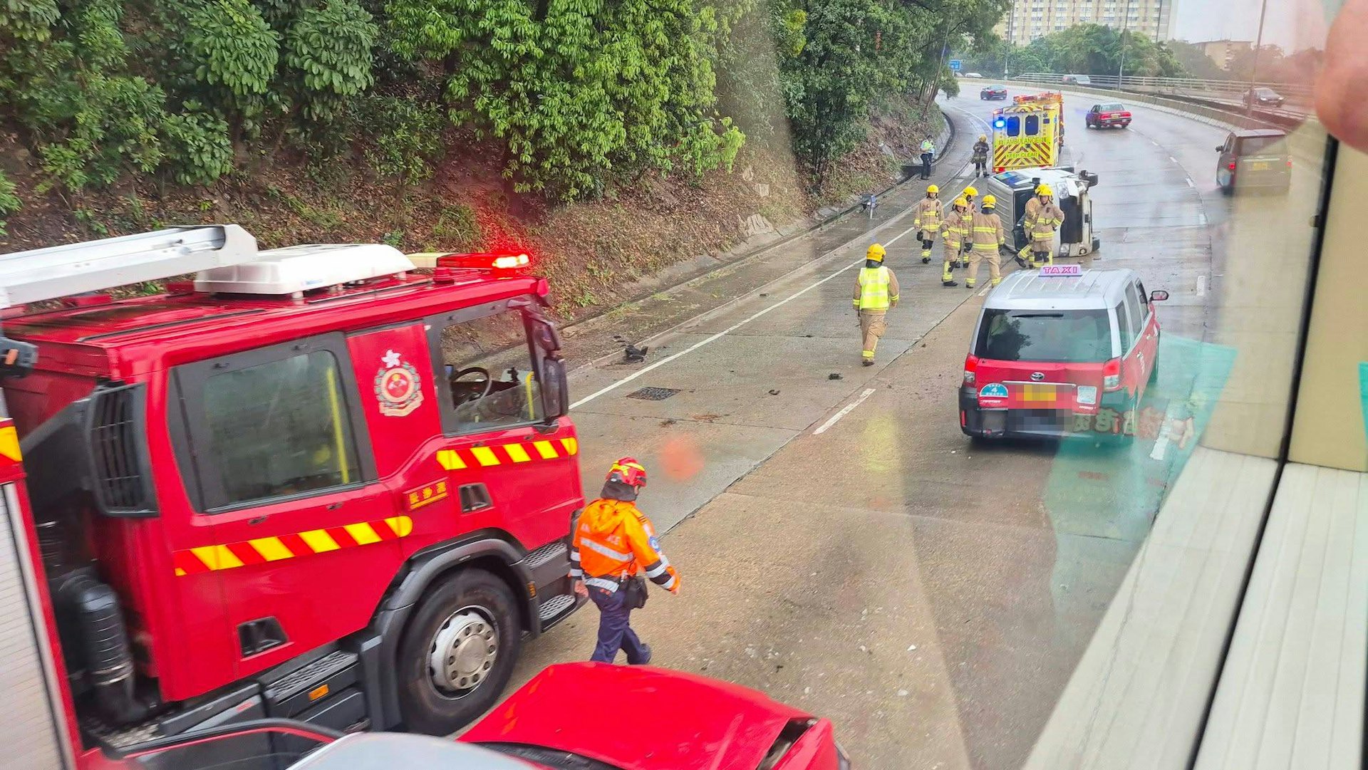 首宗意外發生於下午1時05分,一輛客貨車疑因天雨路滑失控,撞向石壆後向右翻側,並在路中打轉,最終車頭逆轉橫亘於行車線上。司機受傷,事後報警求助。約8分鐘後,即下午1時13分,兩部的士駛至同一地點,疑為閃避翻側的客貨車而互相碰撞,幸事件中無人受傷。