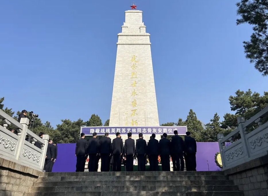 上世紀八十年代,經多方艱難尋找,蘇藝林烈士的遺骨終被迎回大陸。1989年8月12日,他被正式追認為革命烈士,烈屬待遇得到全面落實。此次在天津盤山烈士陵園舉行安葬儀式,既是國家安全機關對隱蔽戰線英烈的深切緬懷與尊崇,也圓滿了組織與烈士親屬為英雄入土為安、立碑銘績的夙願。儀式現場,烈士遺屬後人、相關部門代表共百餘人出席。烈士侄孫蘇艷波在現場潸然淚下,他表示,七十五年過去,二爺爺終於在組織所在地正式安息,家族後人心中的牽掛終於落地,也將永遠傳承烈士的信仰與風骨。