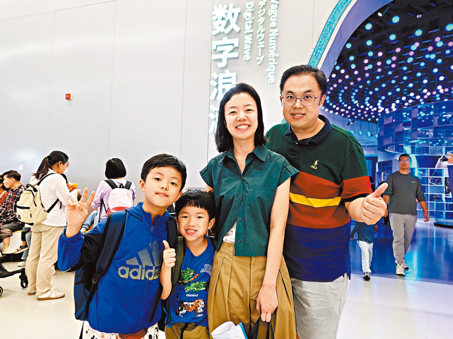 (香港文匯報記者 郭若溪 深圳報道)「這裏太大了,一天根本逛不完,我們半天多只看了三分之一,很多互動裝置和科技體驗,在香港都很難見到,太適合一家人一起逛了。」港人寧先生一家四口,將深圳科學技術館作為本次復活節假期北上行程的第一站。寧太太對場館的分層設計讚不絕口:「低樓層展示生活場景中的科技應用,高樓層側重產業經濟中的智能科技,一家大小不同年齡段都能找到感興趣的內容。不是在家裏看電視,而是沉浸式感受,上午逛了海洋科技、智能應用,下午準備看太空科技,小朋友學到了科學知識和機器人應用,我們大人也見識了很多前沿科技,收穫滿滿。」