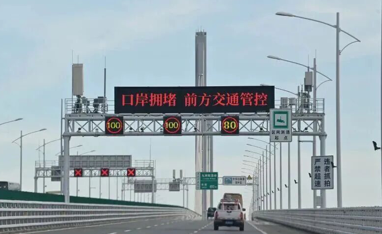 交警部門提醒,車流高峰期間,駕車接近珠澳口岸人工島時,車主要注意觀察電子情報板。若顯示「口岸擁堵,前方交通管控」時,車主要提前減速,嚴格按車道指示標識通行;顯示「出口擁堵,小車靠左、大車靠右」時,要根據車型選擇對應車道,禁止穿插搶行。交警部門特別提醒,交通擁堵期間,車主要聽從現場工作人員指揮,行駛在相應車道上。