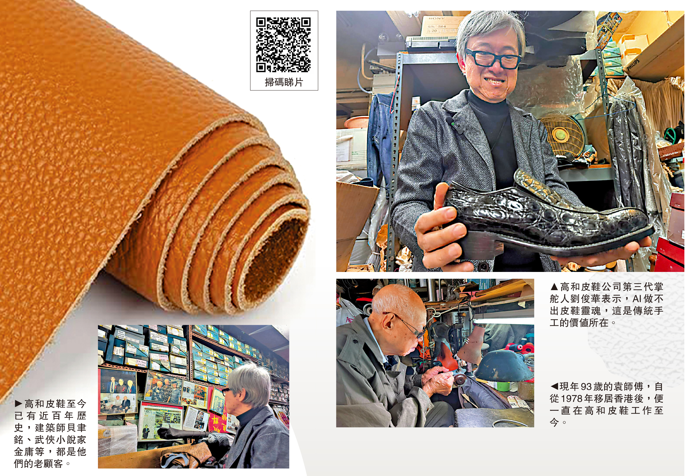 (大公報 記者 伍軒沛)香港是一個節奏快速的城市,惟在北角一間老廠房,仍在堅持手工製作皮鞋,從畫圖、選皮、縫製到定型,一雙皮鞋要「走出」這間工廠,要打磨整整三個月時間。高和皮鞋公司創立於1928年,至今已有近百年歷史,前特首董建華、建築師貝聿銘、武俠小說家金庸等都是他們的老顧客。