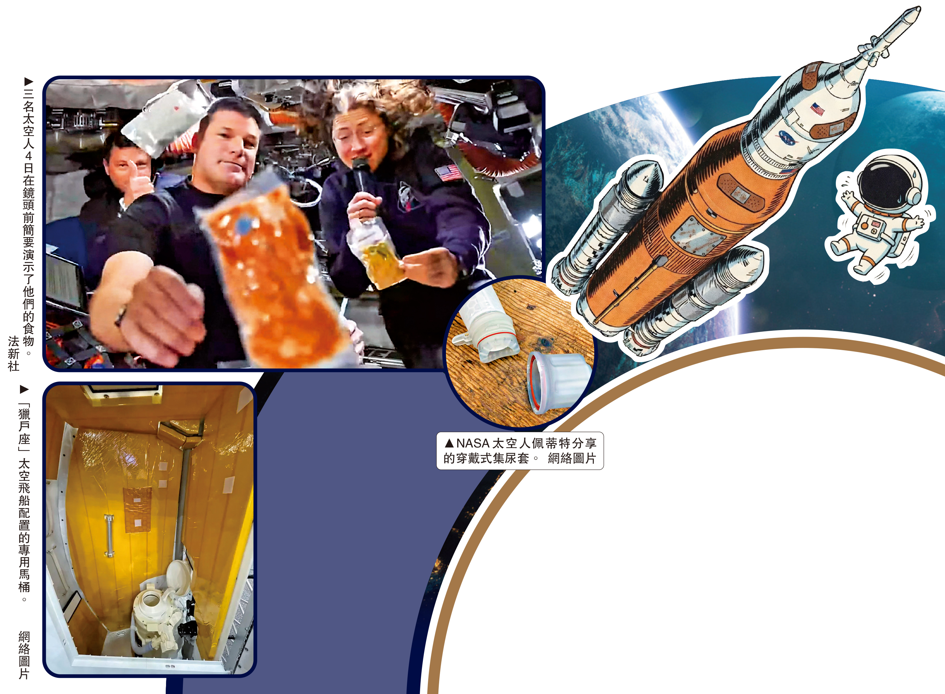 《衛報》指出,對於要在太空飛船上待上10天的四名太空人來說,廁所故障無疑是個巨大打擊。據悉,「獵戶座」太空飛船內搭載了一款名為「通用廢棄物管理系統」的專用廁所,造價2300萬美元(約合1.8億港元),緊鄰太空人登艙的艙口。美媒指出,這是全球首次在深空探測任務中配備真正的衞生間。而「阿波羅」時期的太空任務,當時的如廁條件極其簡陋:小便使用穿戴式集尿套,大便則在同伴注視下使用塑料袋收納。