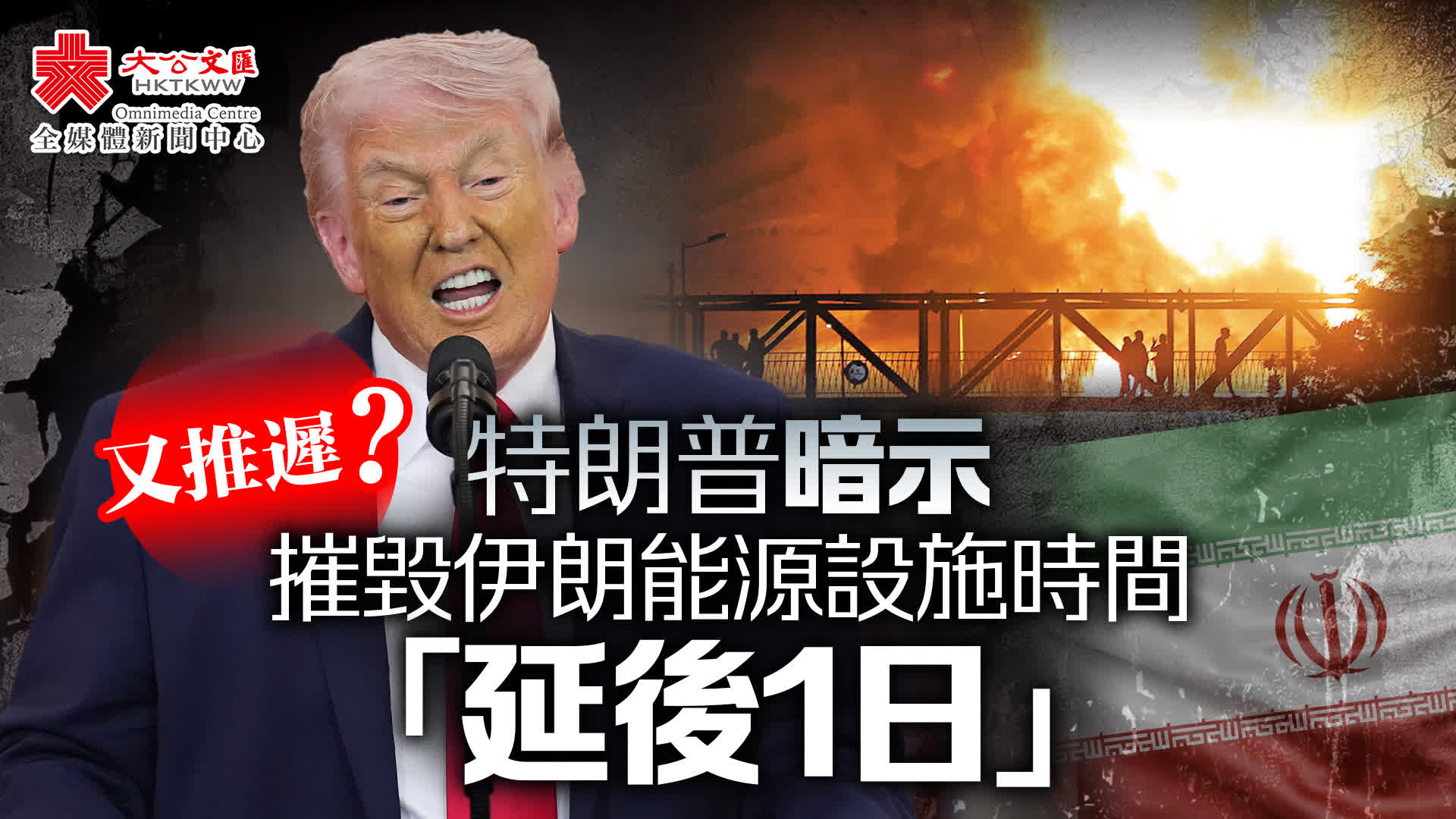 特朗普3月26日宣布將對伊朗能源設施的「摧毀」行動推遲10天,期限延至美國東部時間4月6日20時。這已是他第二次推遲這一時限。