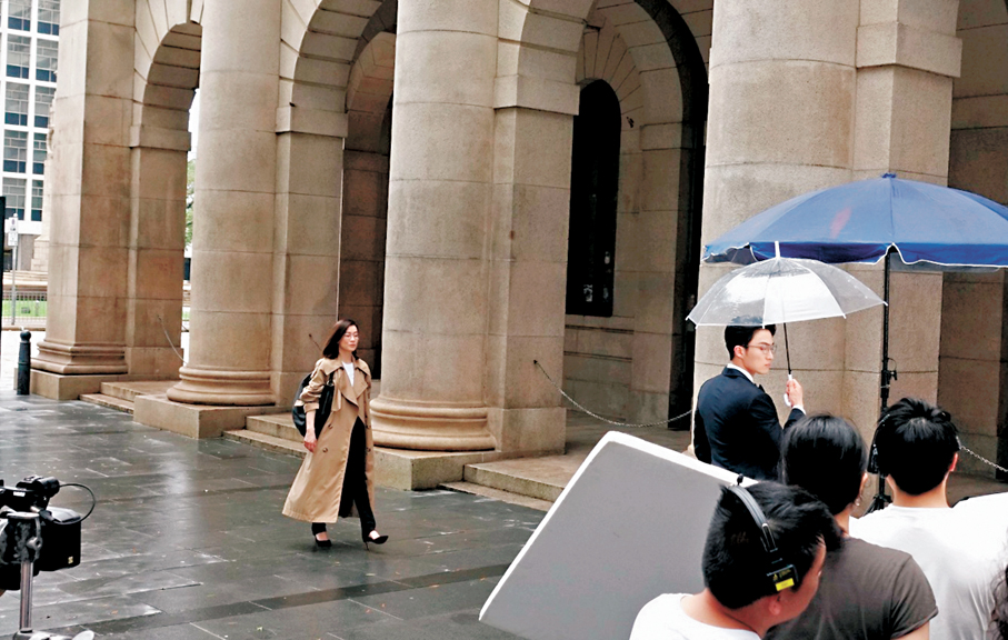 (香港文匯報記者 梁靜儀)佘詩曼(阿佘)、周嘉洛、馬貫東、蔣祖曼及監製鍾澍佳等昨日現身中環終審法院外,為TVB熱播劇《正義女神》拍攝番外篇,吸引大批市民冒雨圍觀。番外篇以3分鐘短劇形式拍攝,除了在香港取景外,亦會在深圳拍攝,播出時間則尚未落實。演出經驗豐富的阿佘未來有興趣挑戰舞台劇,但首要是遇上好劇本,更希望與黃子華合作。