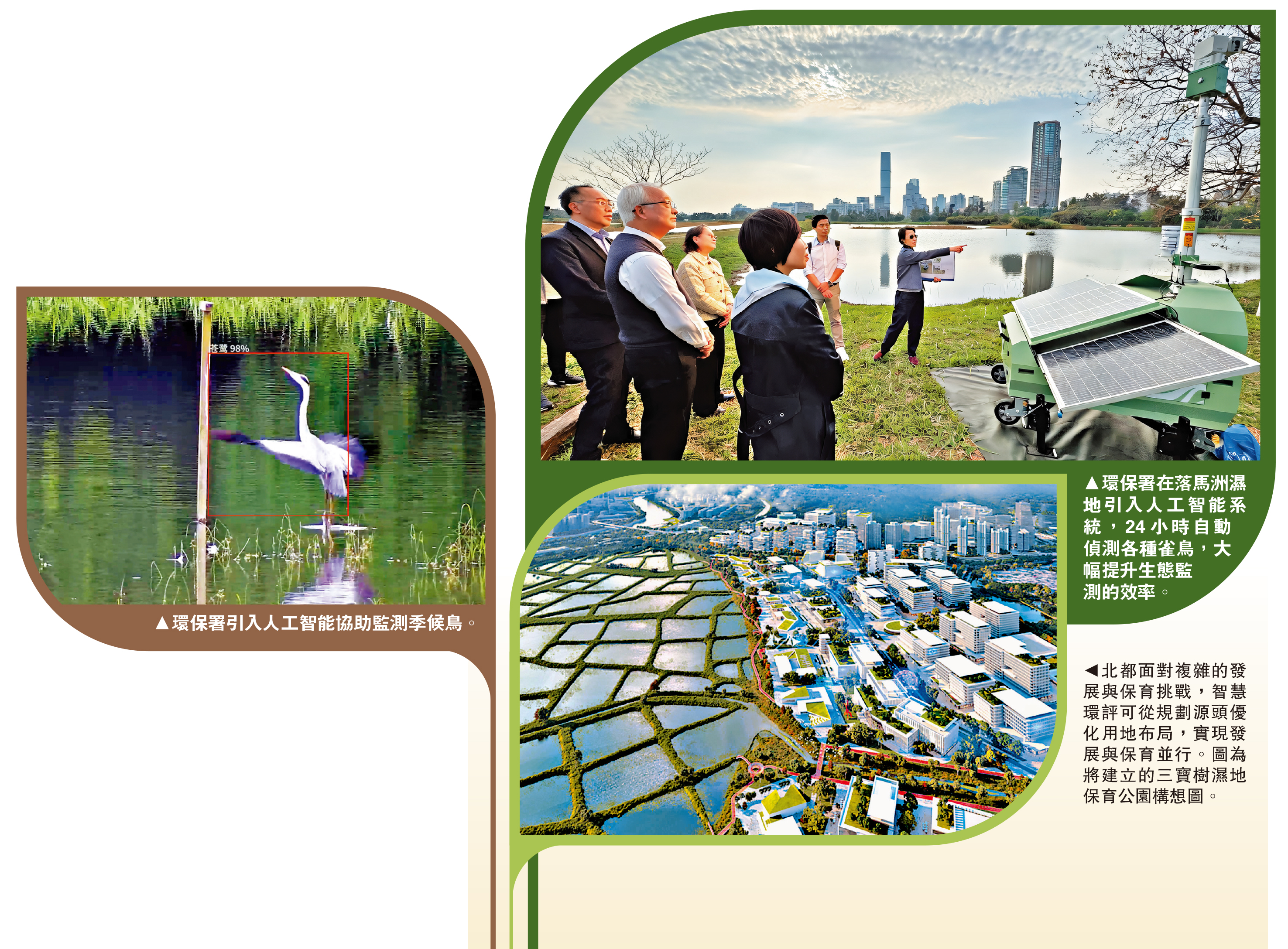 在推進智慧環評的同時,政府亦引入多項先進科技,進一步提升環境監測和評估的能力。謝展寰舉例,環保署運用人工智能科技協助監測季候鳥的遷徙路徑和停棲情況,利用影像識別及自動數據分析,提高監測的精準度和效率。最近環保署使用三維激光雷射技術進行樹木調查,能快速且精準地自動計算樹高、樹冠闊度及樹胸徑等資料,讓項目團隊在規劃初期能及早制定更周全的樹木保育方案。