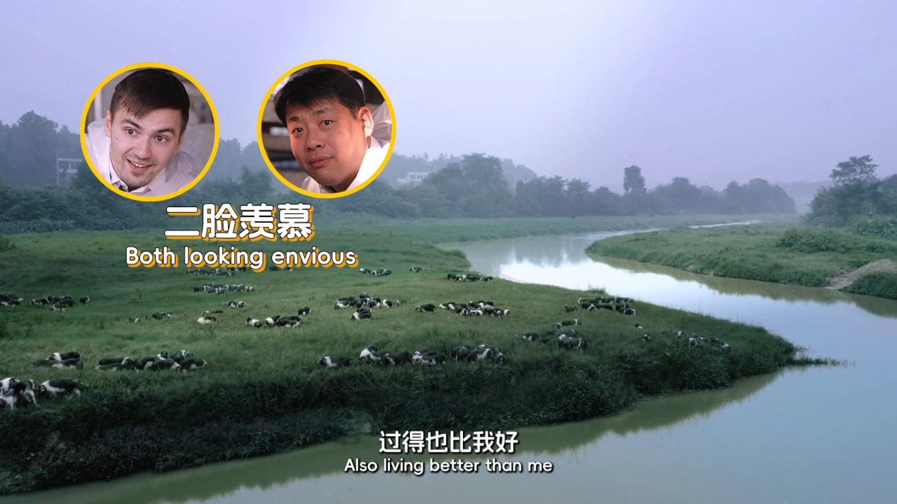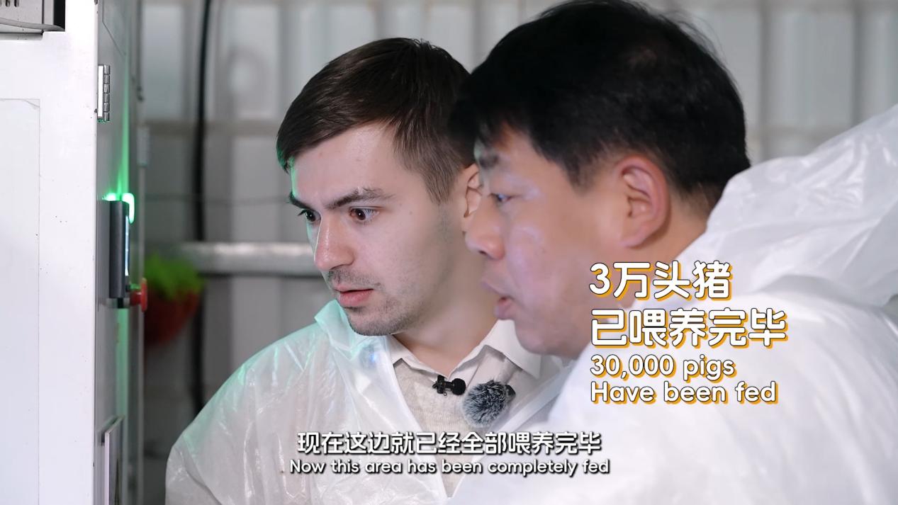 如果說花豬的「精緻生活」讓小熊倍感新奇,那麼養殖基地的自動化養殖模式,則讓其直呼:「中國的高科技太強了!」面對「如何餵養三萬頭豬」的難題,基地給出的答案是按下一個按鈕即可完成全場投喂,全程自動化的餵養方式顛覆了外國友人對傳統養豬的認知。