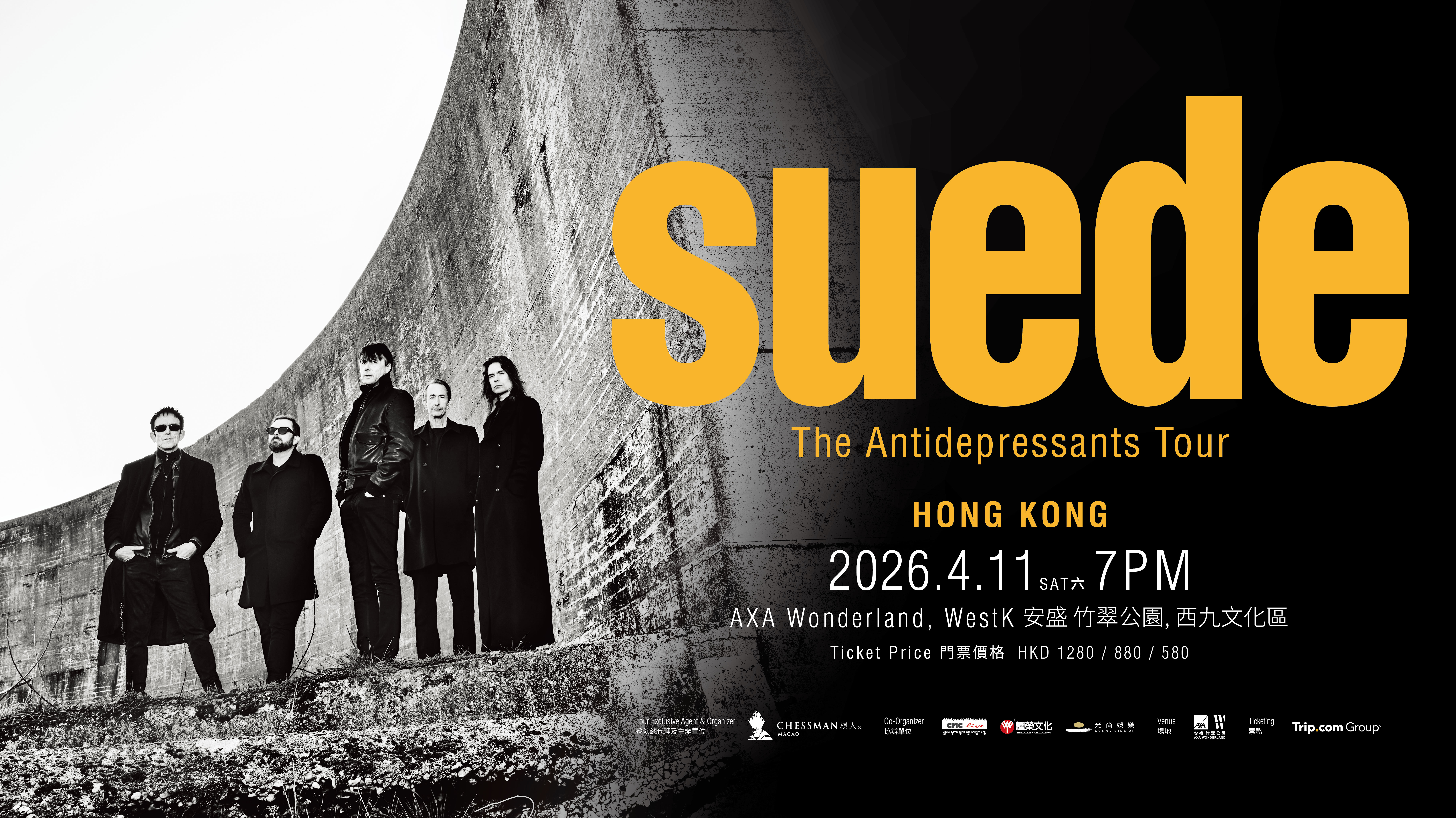 早前,低音吉他手Matt Osman和鍵琴手Neil Codling接受香港媒體訪問時表示,香港對Suede而言是一個特別的地方,每次到訪都有賓至如歸之感,還能品嘗地道美食。今次演唱會將帶來新專輯《Antidepressants》及過去30年的經典作品,呈現樂隊橫跨時代的音樂旅程。
