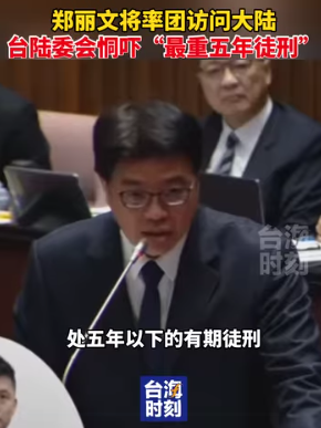 然而,民進黨當局不斷抹黑鄭麗文訪陸,甚至以法律恐嚇、輿論圍剿阻撓交流。台陸委會日前放言,鄭麗文若有「越界」行為,最高可判5年。
