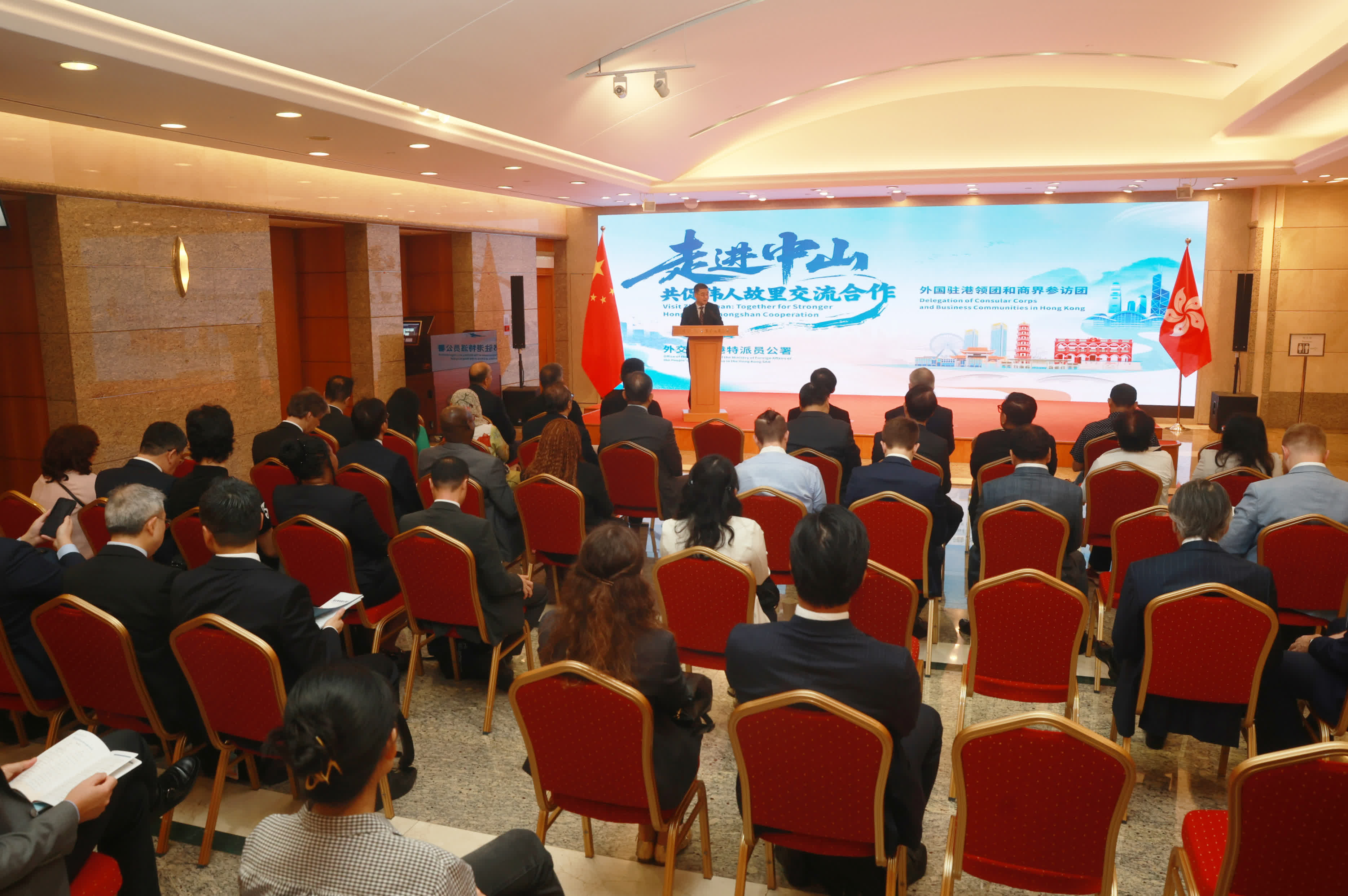 啟動儀式上,外交部駐港公署副特派員花有致辭表示,中山憑藉大灣區核心區位、完善交通與強勁製造與研發實力,與香港等城市形成互補、合作空間不斷擴大,並以其深厚歷史文化底蘊與優質營商環境,成為推動大灣區融合發展的重要夥伴。希望參加者可以透過對中山的走訪,感受中山的高品質發展,充分體會大灣區一小時生活圈的便利。