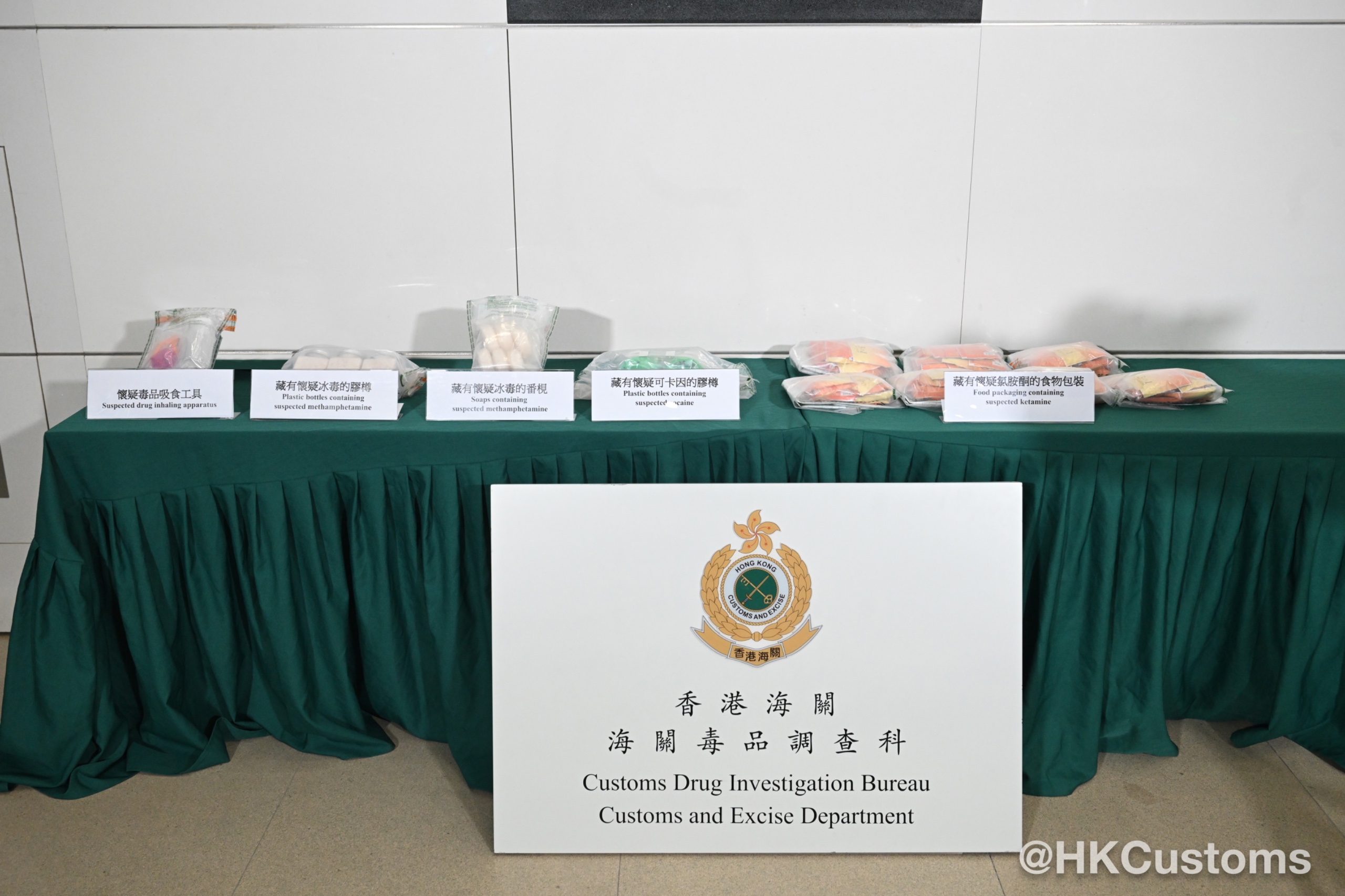 香港海關在四月一日及四月二日分別在香港國際機場及油麻地偵破兩宗毒品案件,共檢獲約三點一公斤懷疑氯胺酮、約一點七公斤懷疑可卡因和約一點七公斤懷疑冰毒,估計市值共約港幣三百四十萬元,並拘捕兩名懷疑涉案人士。