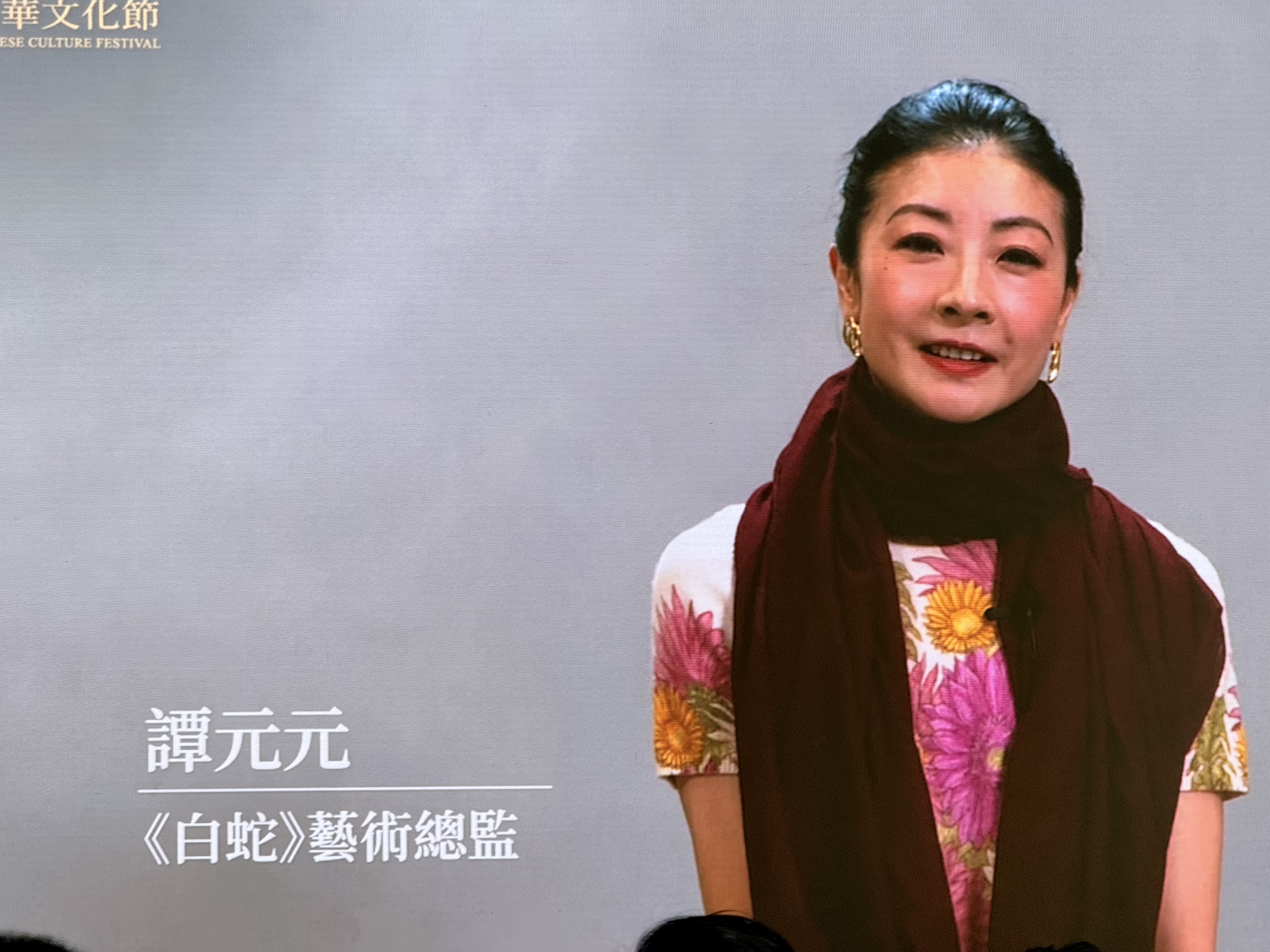 《白蛇》藝術總監、著名舞蹈家譚元元以視像形式介紹作品,她表示該劇目不再只講愛情故事,而是探索女性如何在生活瑣碎中找到內心的「小青」,完成自我認知與蛻變。譚元元指,劇目融合芭蕾、中國舞、現代舞、武術等元素,融入多媒體技術,希望讓經典作品在當下煥發新生。