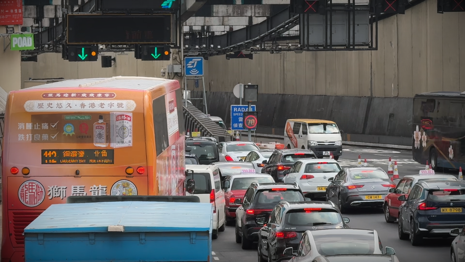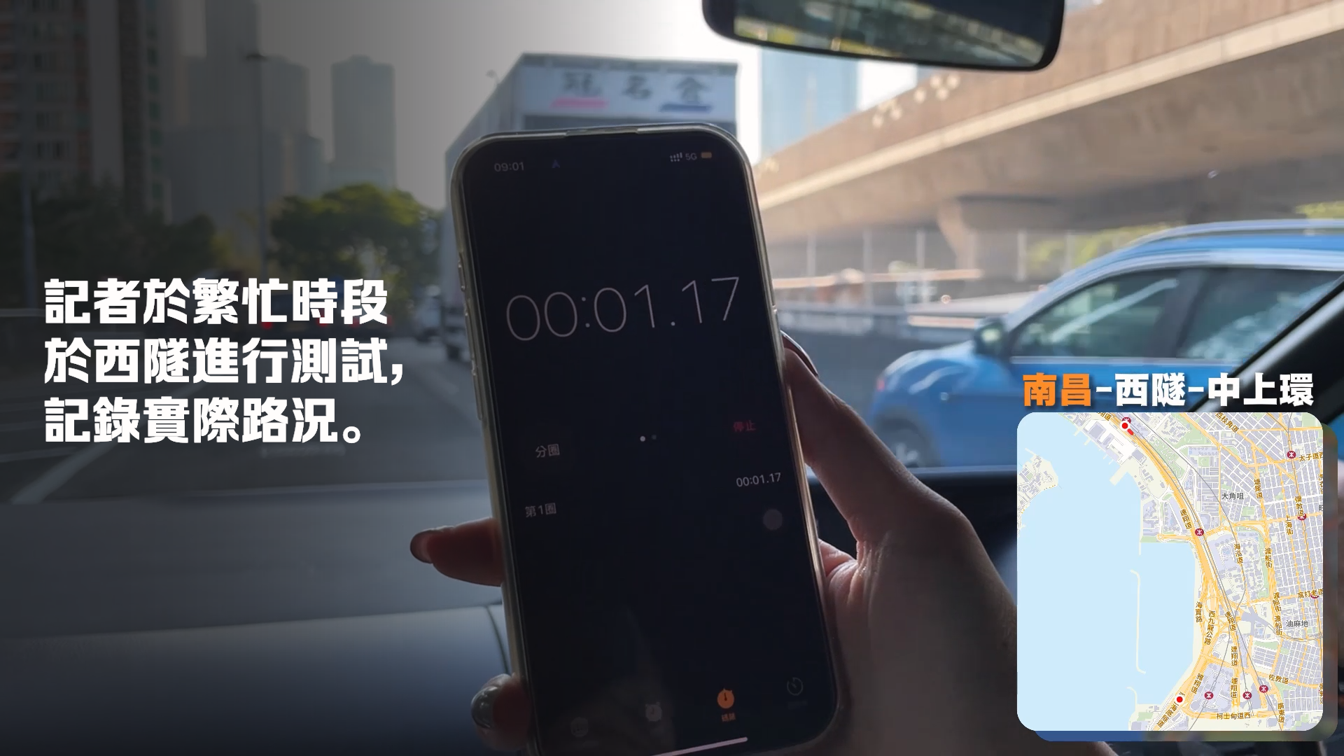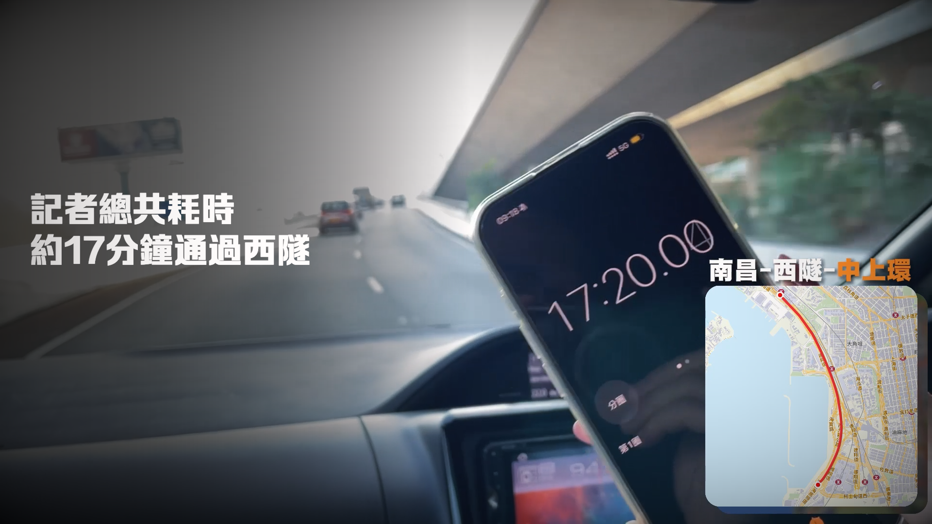 最終,記者共耗時約17分鐘通過西隧,儘管途中未出現長時間停候,但在西九龍公路主道,各車輛保持約2米距離「時走時停」,駕駛員要集中精神留意周圍變道或前方急停的車輛;而在西隧入口,因左側車流匯入,車速需更加放緩。
