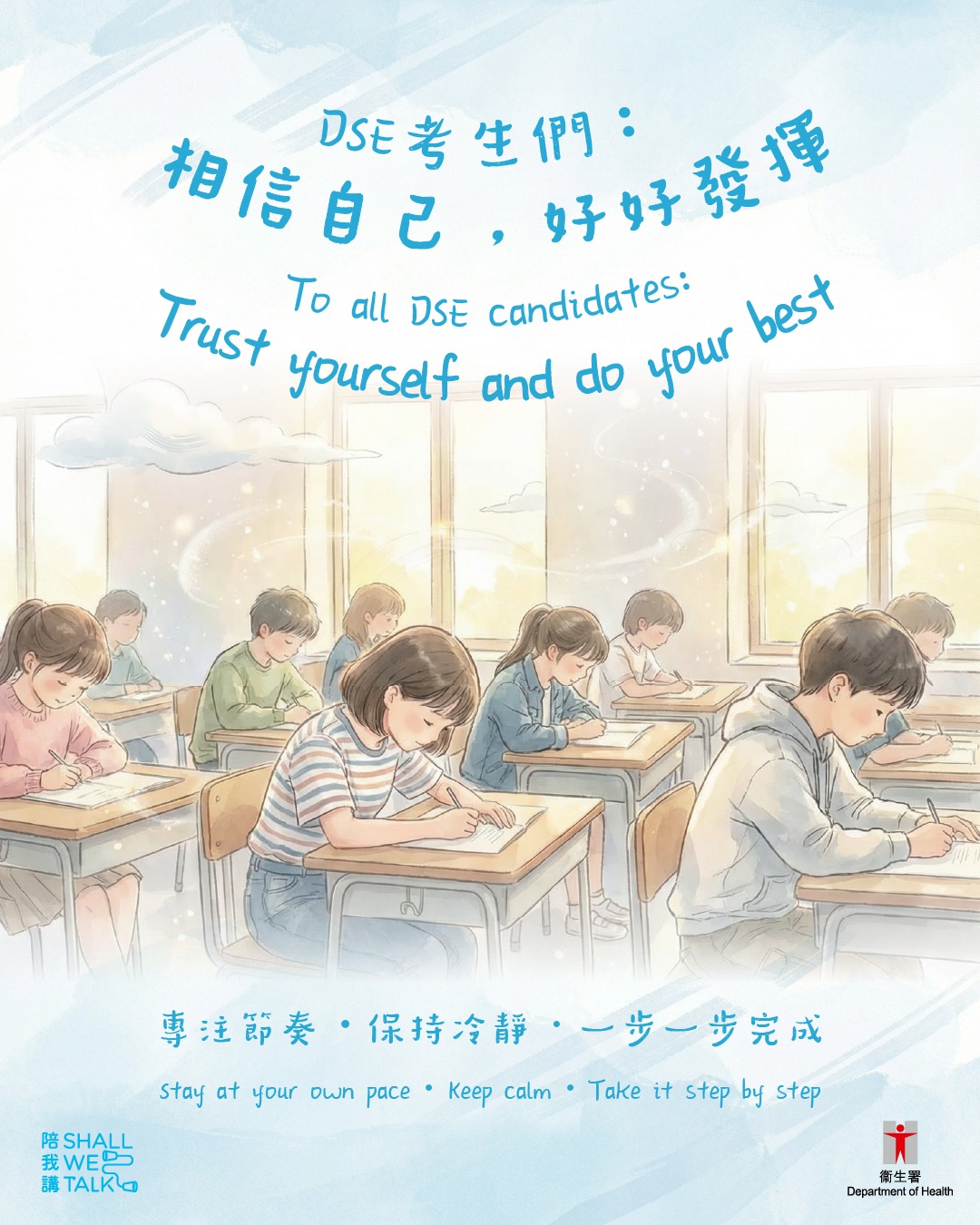 更多關於情緒健康的資訊,可瀏覽衞生署學生健康服務網站和YouthCan網站。