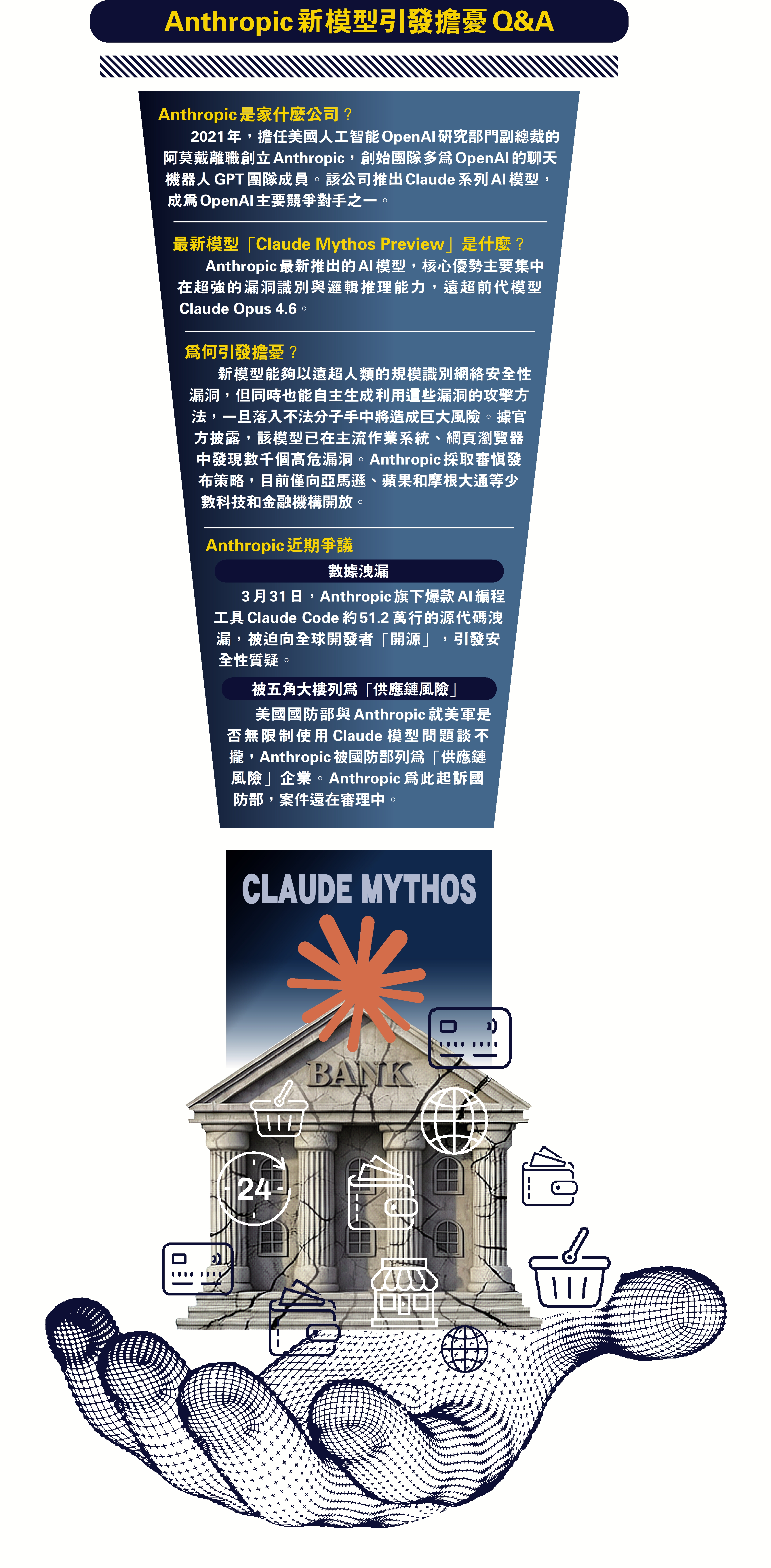 Mythos的模型能力引起美國銀行業警戒,對於高度依賴數字系統運作的銀行而言,一旦核心系統被滲透,交易中斷、數據洩露甚至系統性連鎖反應都有可能發生。