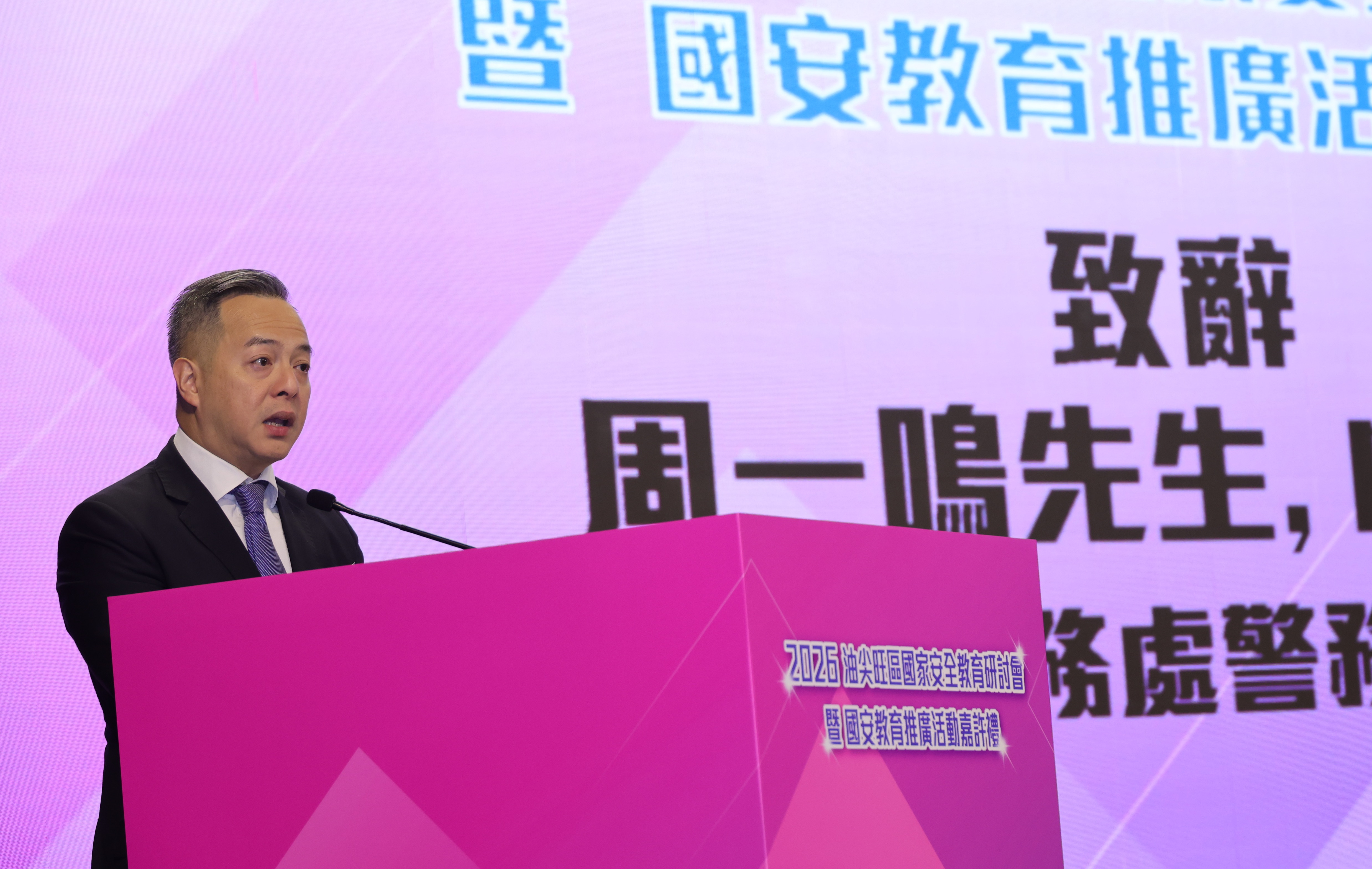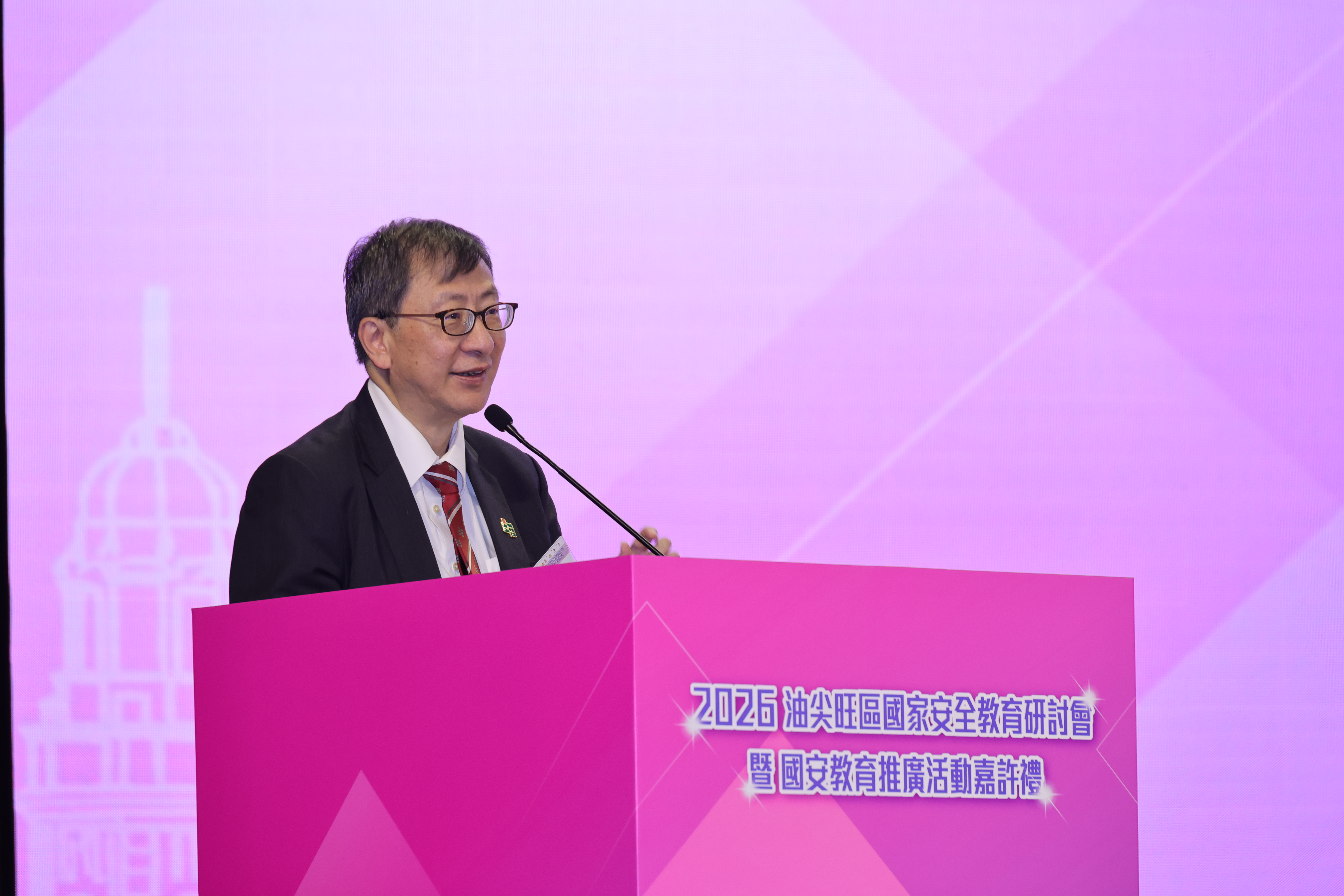 李子建教授致辭時表示,油尖旺區一直是教大重要的合作地域之一,能連續三年㩦手推動國安教育,實屬難能可貴。他指出,隨着教大在西九龍兩個新教學中心相繼投入服務,將能更深入社區,與區內學校及不同持份者建立更緊密的夥伴關係,推動國安教育,實踐「大學立德樹人、教育連繫社區」的理念。