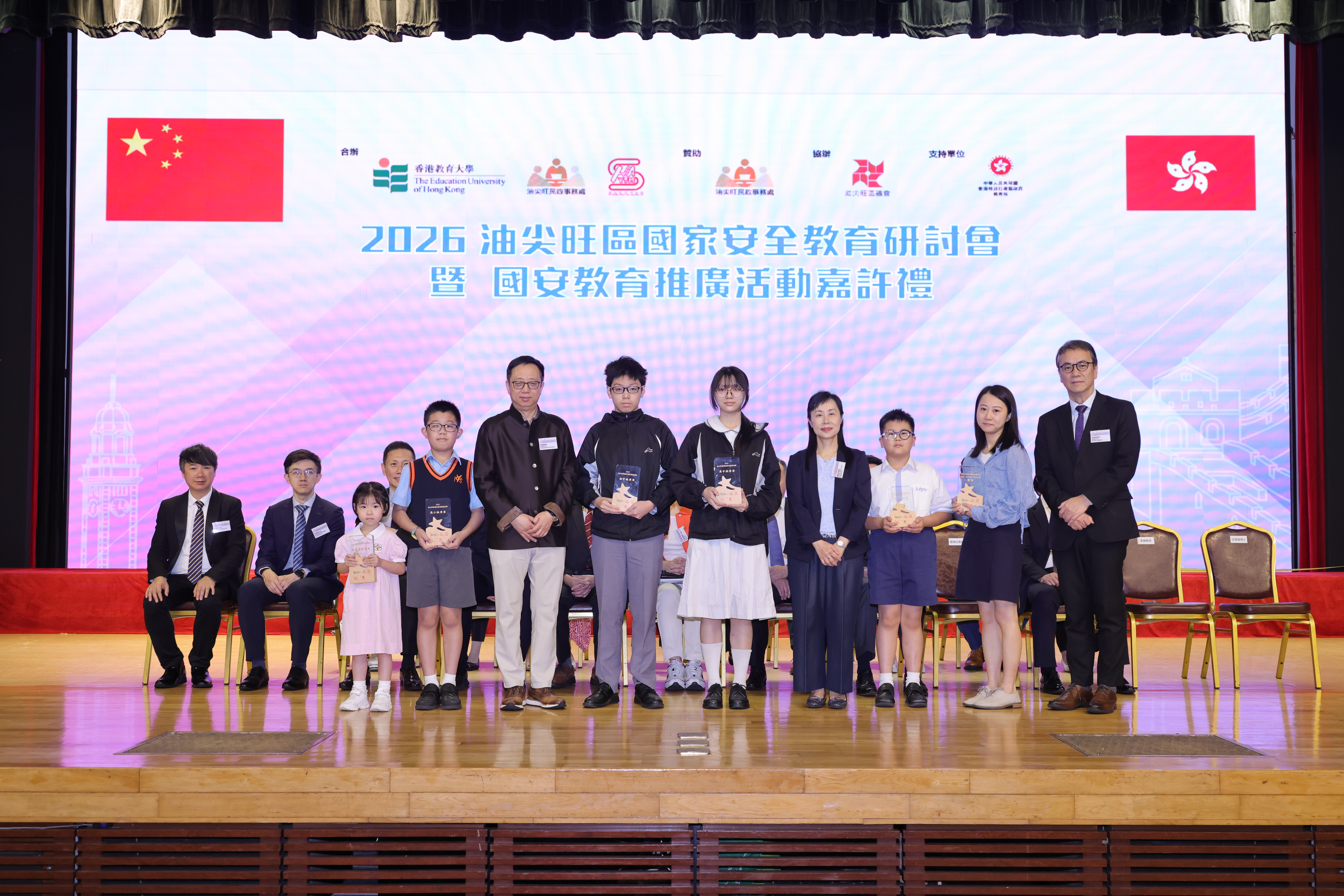 教大今日(4月11日)與油尖旺民政事務處及油尖旺區校長會,於尖沙咀會堂展開首個國安教育活動﹕「2026油尖旺區國家安全教育研討會暨國安教育推廣活動嘉許禮」,邀請師生、地區領袖及國安教育專家聚首,分享推動國安教育的經驗和見解。活動吸引逾300名師生、家長及社區人士參與。