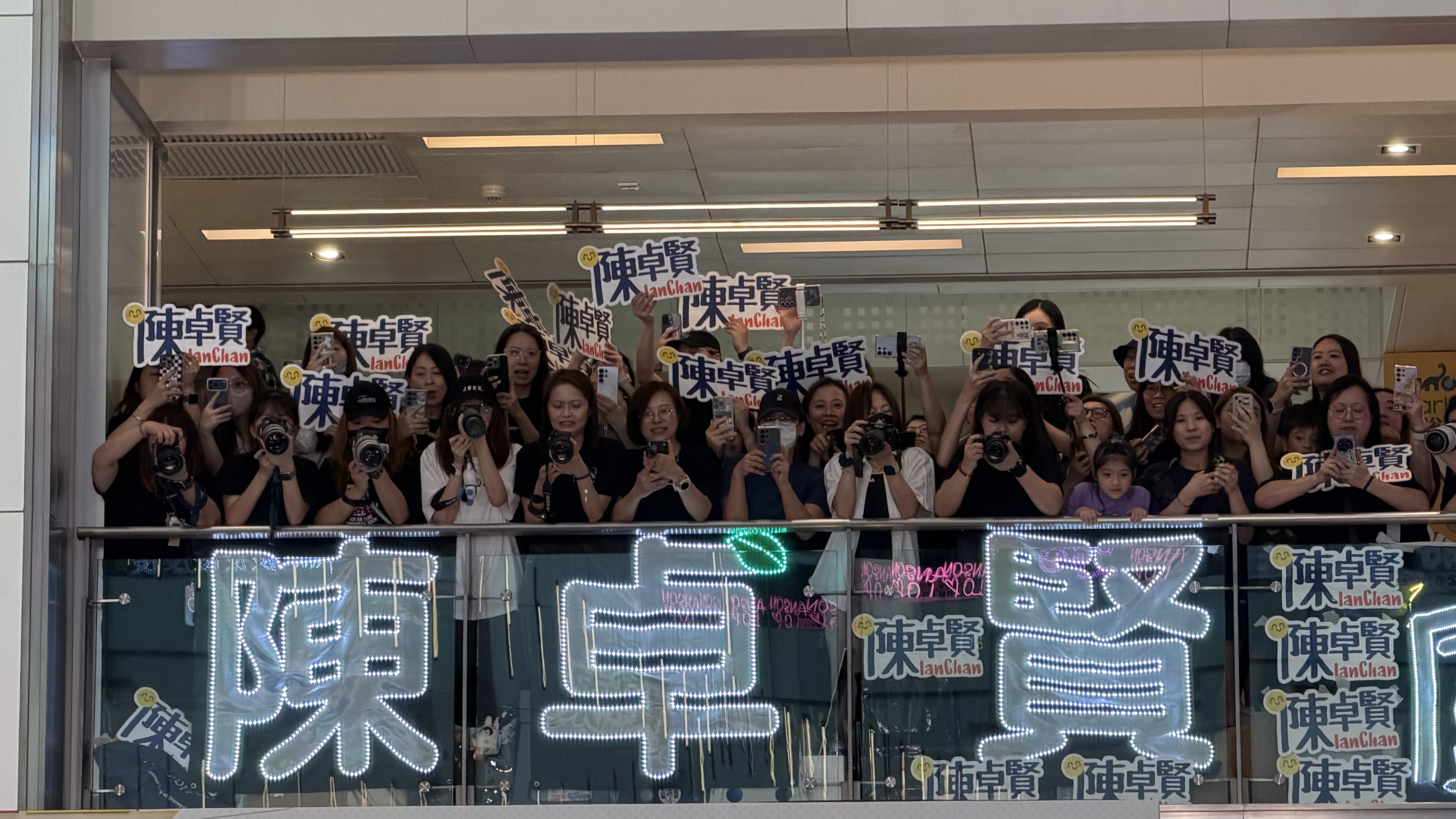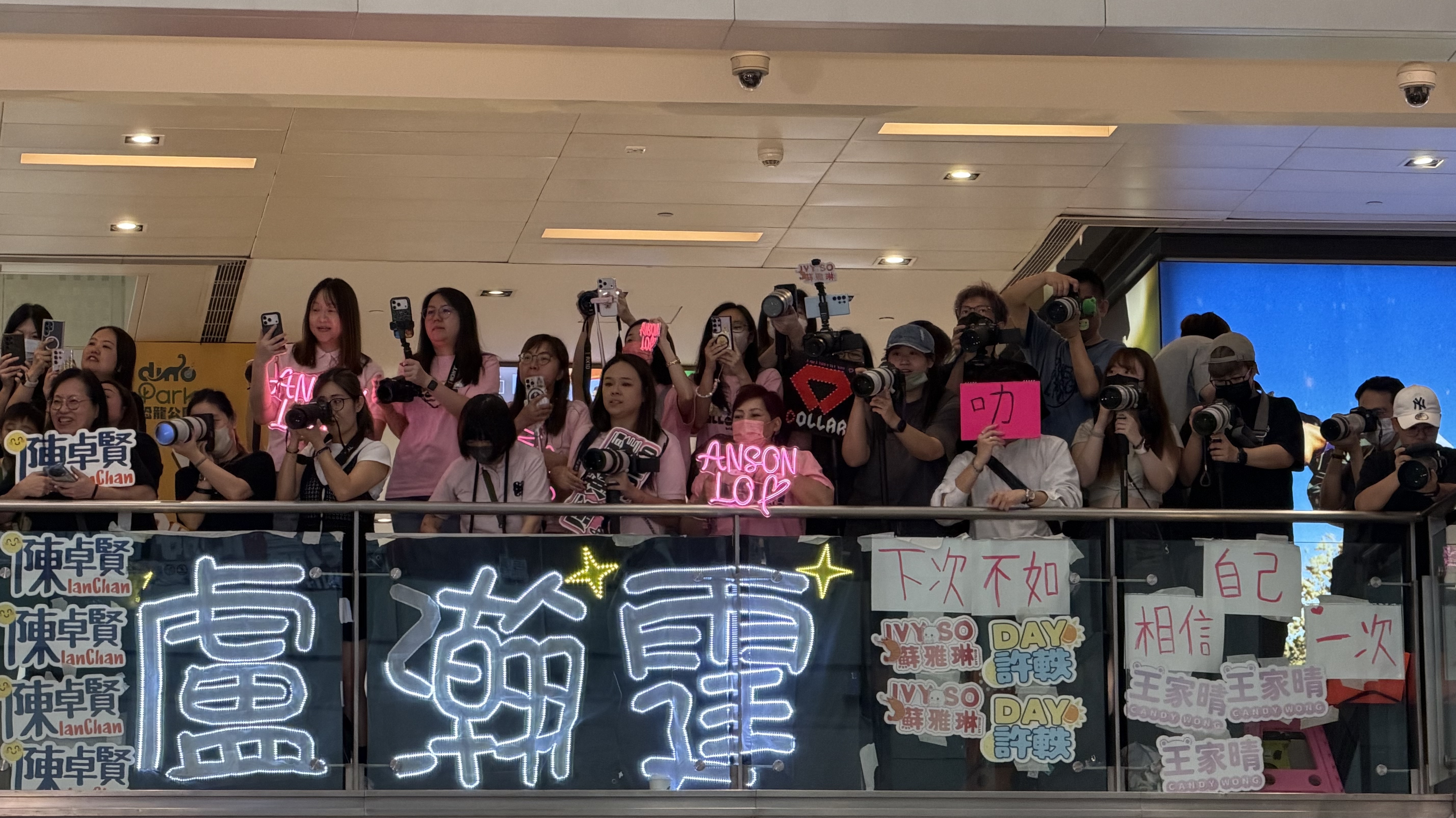 (大公文匯全媒體 記者 劉妍伶)ViuTV音樂頒獎禮《FWD富衛保險呈獻:CHILL CLUB推介榜年度推介25/26》將於5月3日(星期日)假亞洲國際博覽館10號展館隆重舉行。ViuTV今日(11日)特別在商場舉行記者會。現場歌手雲集,包括MIRROR、李幸倪(Gin Lee)、馮允謙(Jay Fung)、陳凱詠(JACE)、尹光、雲浩影(Cloud)、林愷鈴(Ashley)、曾傲棐(Arvin)、黃明德(Dark)、COLLAR等,吸引眾多粉絲到場支持,場面墟冚。其中,人氣組合MIRROR成員姜濤、呂爵安、陳卓賢、盧瀚霆、邱傲然等現身記者會,不停向手持應援燈牌的粉絲揮手打招呼,引得全場尖叫聲不斷。