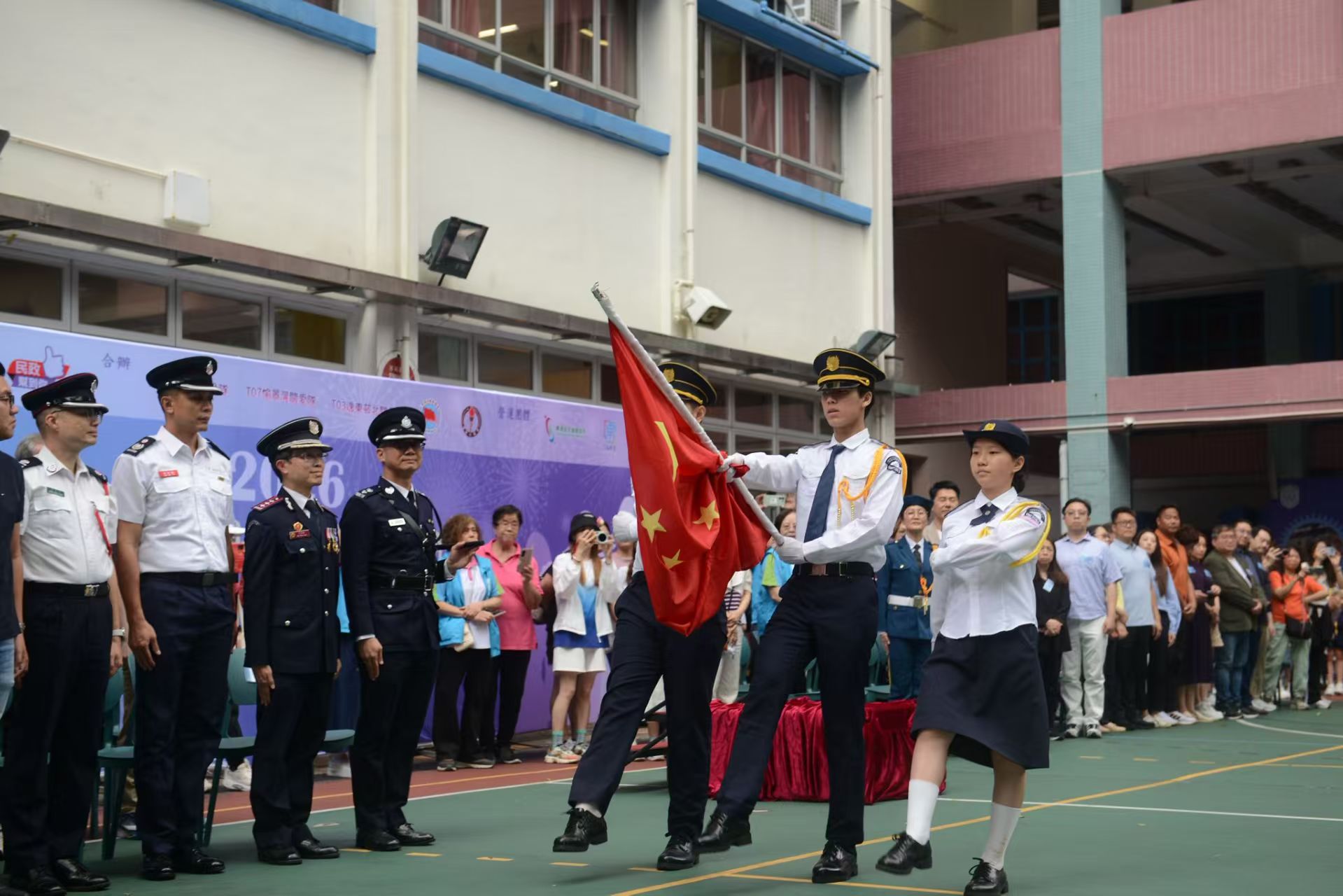 儀式在雄壯的國歌聲中拉開帷幕,全體人員向國旗行注目禮,場面肅穆。李祖銘在致辭中強調,國家安全是社會繁榮穩定的基石。在這個世界格局複雜多變的時代,香港作為國家的一部分,能夠保持繁榮穩定,成為一個平安、有序的地方,實屬不易,這有賴於社會各界對維護國家安全的共同努力與堅定承諾。他呼籲市民尤其是青少年積極學習國安知識,共同履行維護國家安全的義務。