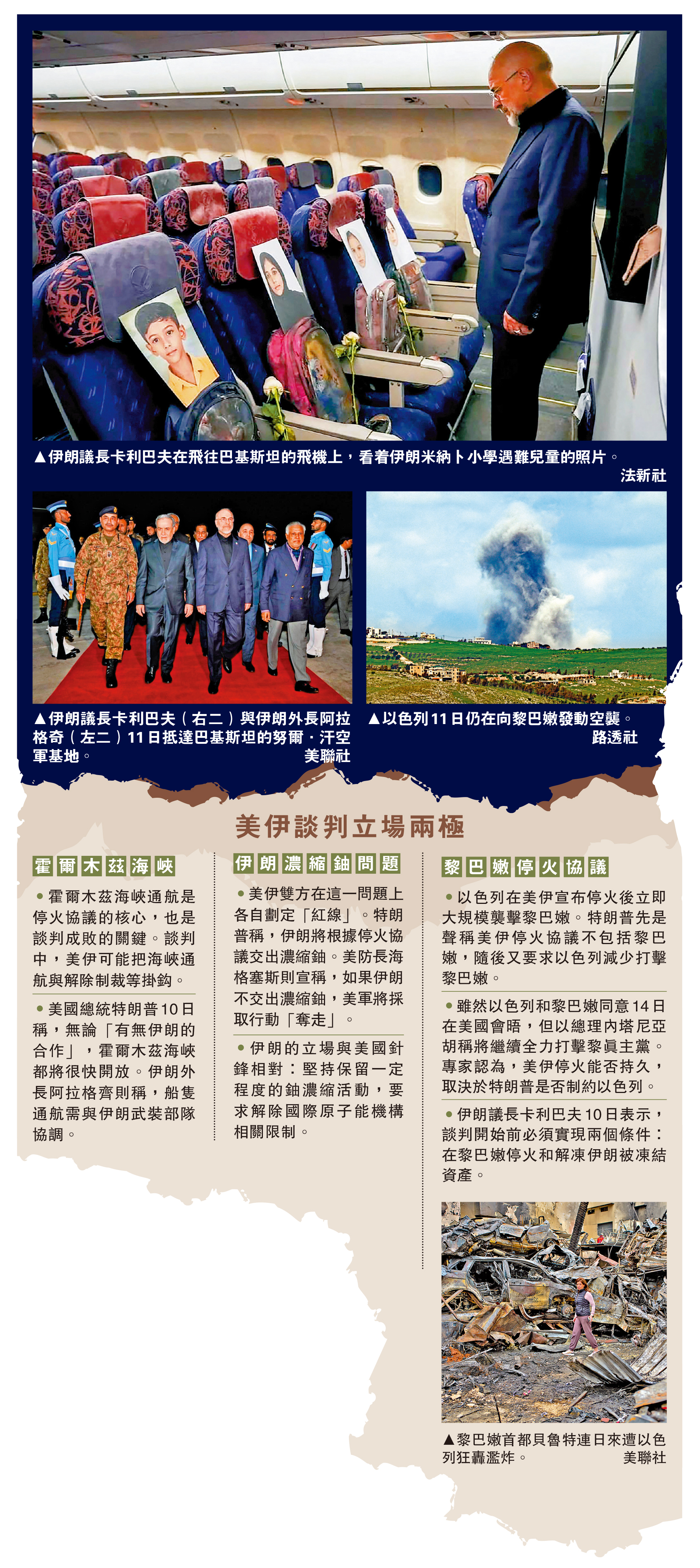 另據伊朗媒體報道,卡利巴夫11日在社交媒體發布的照片顯示,在伊朗代表團飛往巴基斯坦的飛機座位上,擺放着4名在美國襲擊中遇難兒童的照片,下面是他們的書包,每個書包旁邊放着一枝鮮花。此次伊朗談判代表團的名稱「米納卜168」,意指2月28日遭美軍襲擊的伊朗米納卜小學遇難的168名兒童。