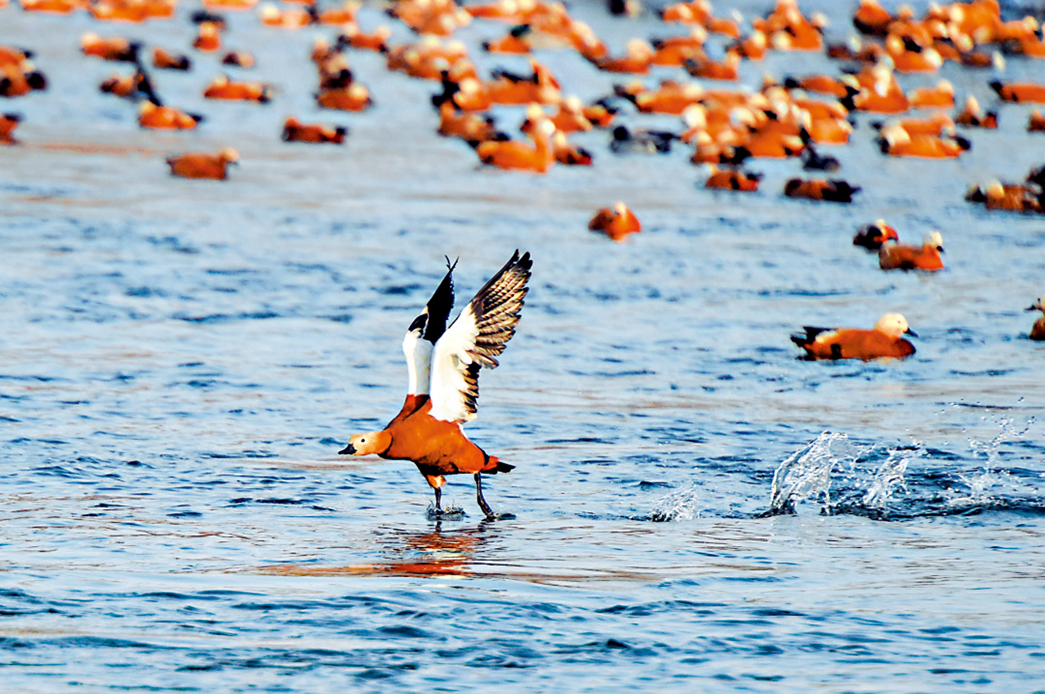 說回長白島,這裏之所以成為眾多候鳥的越冬選擇,最初源於這裏的松花江是溫暖的不凍江段。由於上游的豐滿水電站,下洩江水帶着發電機組的溫度,即使在冬天的嚴寒中也能保持四至十攝氏度水溫。這不但化育了吉林霧凇這個自然奇觀,也使大批候鳥有了一個遠比遙遠南方更為近便的越冬選擇。當然,除了自然條件之外,一個友好的社會環境至為重要,而這個環境的形成有賴於「鳥叔」任建國的堅守。從一九九六年開始,任建國就在島上義務護鳥,他驅逐盜獵者,救助遇險鳥類,自購鳥糧在冬天投餵候鳥,在他的帶動下,更多社會力量紛紛參與到愛鳥護鳥的行動中,使候鳥數量逐年增加,從幾百隻,一直到今天的上萬隻。這又道出了一個生存邏輯之上的至高法則:互助與分享才是所有生命的福祉,是隱於春華秋實、生老病死這些表象之下的無言天道,是我們每個人都能參與建設的人間天堂。