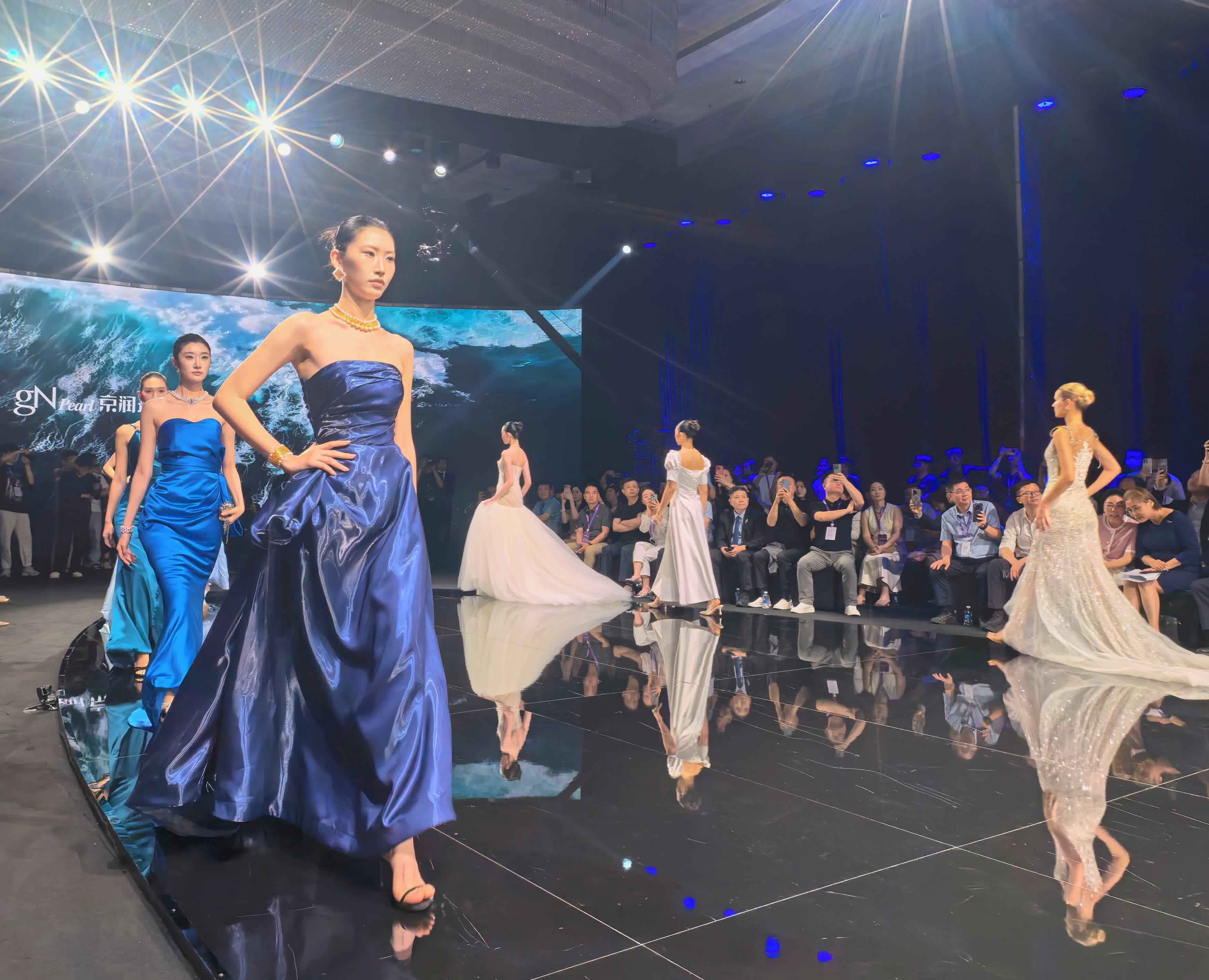 當天,京潤珍珠還以一場沉浸式高定大秀全方位發布珠寶新品。此次發布的多系列新品以「來自大海的珍珠之美」為主題,以海洋美學融合當代設計語言,兼顧日常佩戴與收藏需求。妝品新品聚焦抗皺、修護等護膚需求,推出融合漢方理念的系列產品。