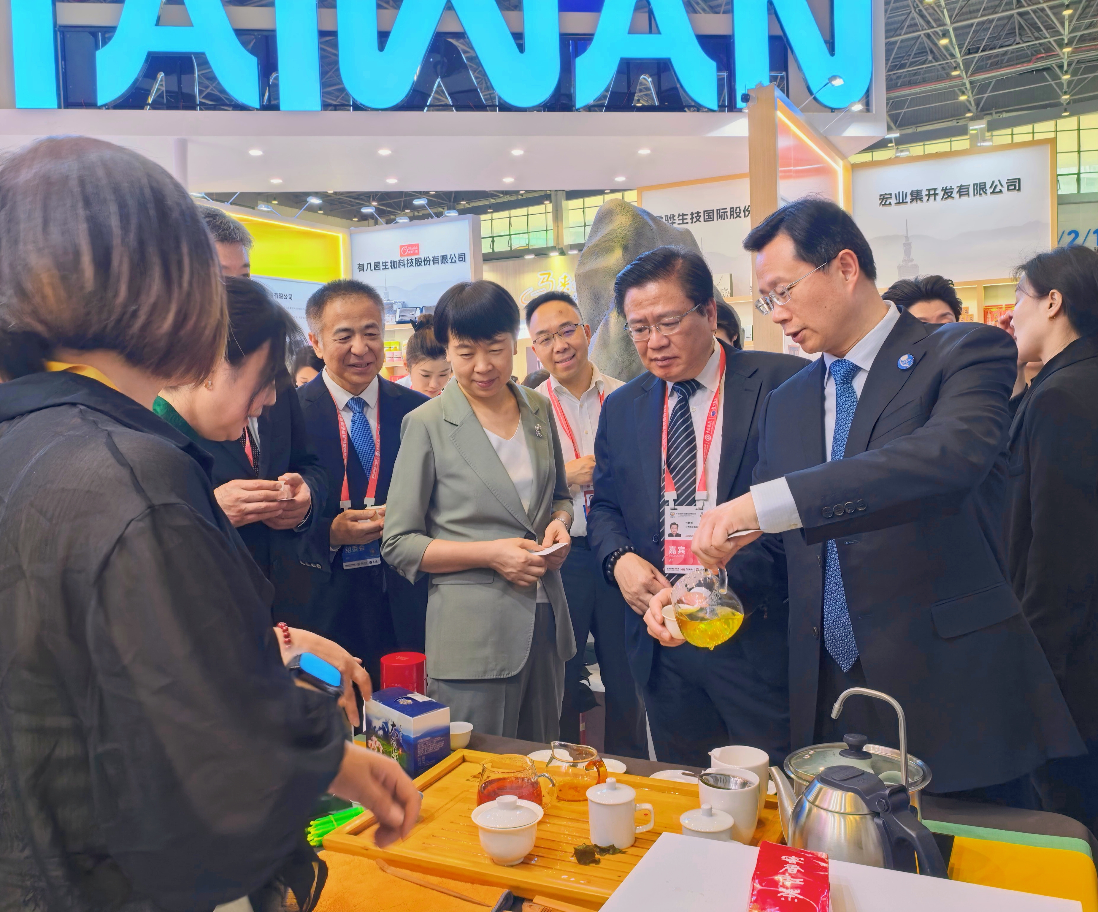 本屆「消博會」首次設立台灣特色展區,由台灣商業總會牽頭組織,助力兩岸經貿文化交流。台灣特色展區佔地共360平方米,共有20家台企攜24個品牌入駐,其中包括旺旺集團、金門酒廠等知名企業。此外,展區還匯聚了美湛雲瓷(文創陶瓷)、老太陽堂(伴手糕點)、竹葉堂(台灣高山茶)等優質品牌。