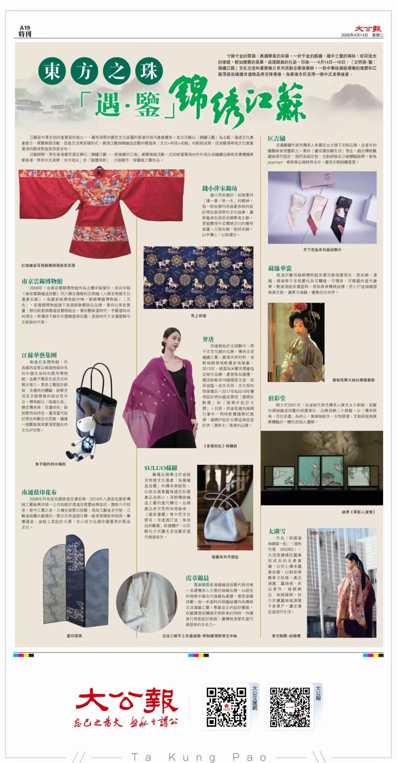 寸錦寸金的雲錦,雅韻華章的宋錦,一針千金的蘇繡,織中之聖的緙絲,紋彩流光的漳緞,輕如煙霧的吳羅,返璞歸真的扎染、印染……4月14日至16日,「文明遇·鑒:錦繡江蘇」文化交流和產業推介系列活動在香港舉辦,一批中華絲綢最璀璨的瑰寶和江蘇頂級染織繡非遺精品將空降香港,為香港市民呈現一場中式美學盛宴。