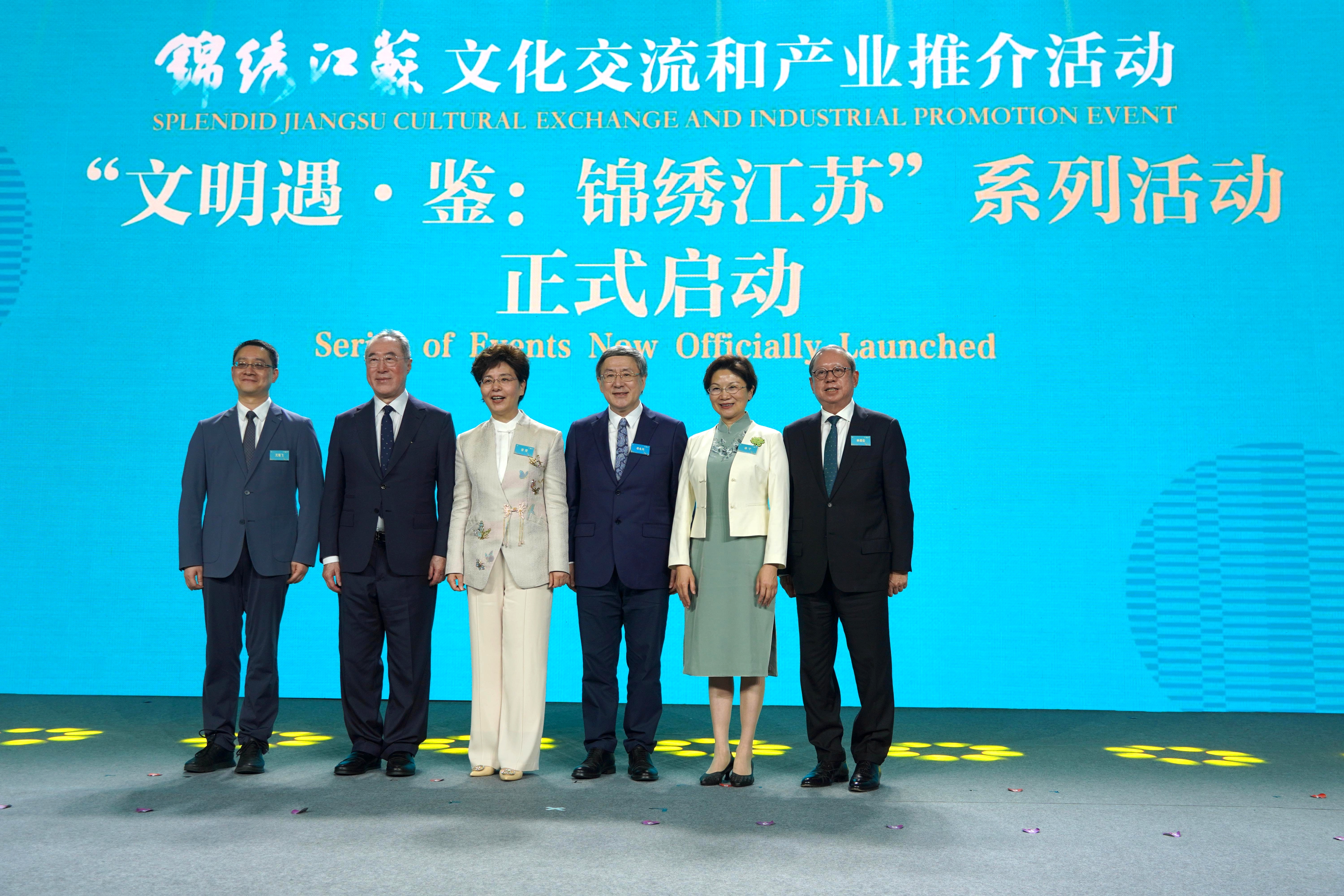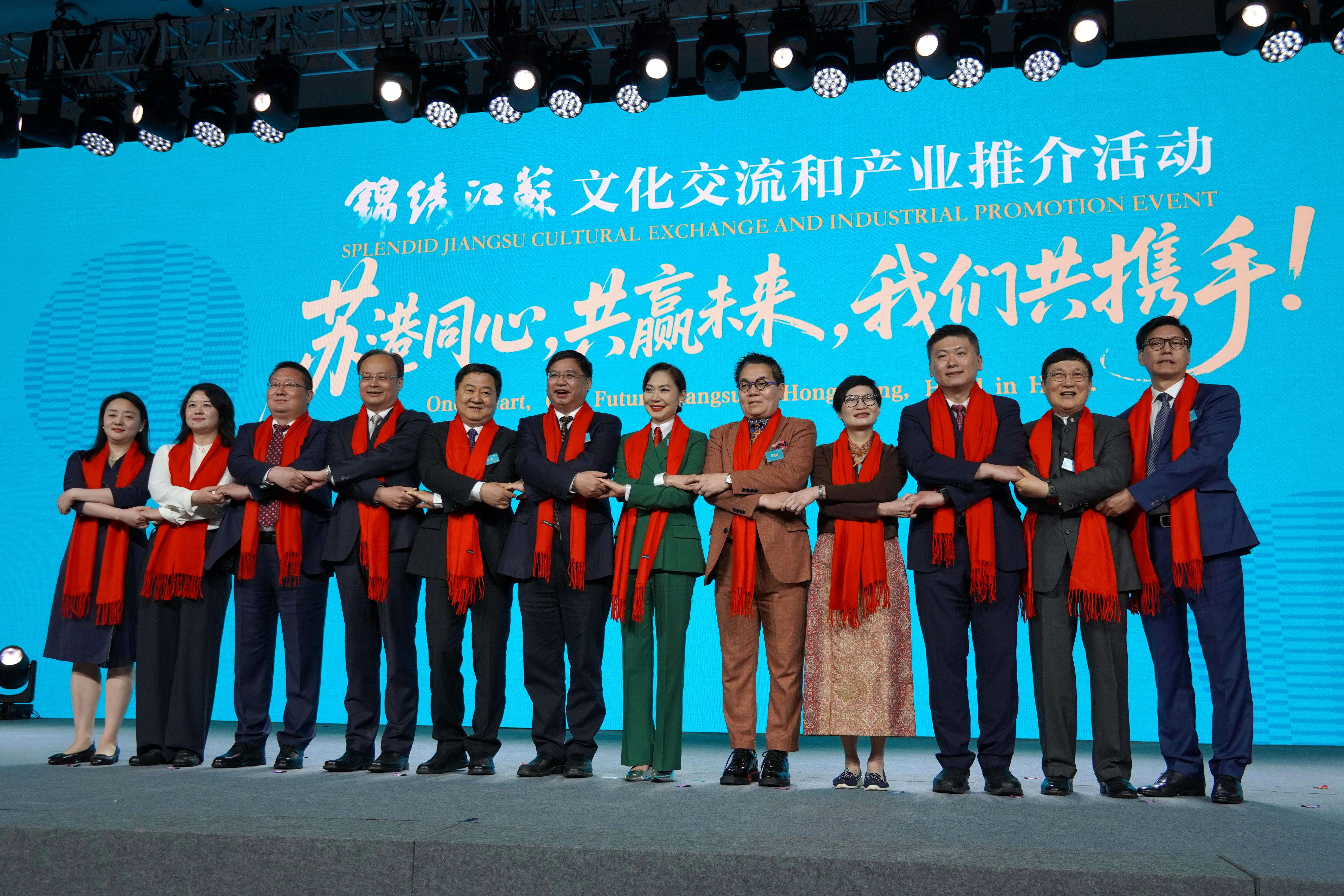 活動現場冠蓋雲集,中共江蘇省委常委、省委宣傳部部長徐纓,香港特區政務司副司長卓永興,全國政協常委、香港江蘇社團總會創會會長唐英年,香港麗新集團主席、香港旅遊發展局主席林建岳,紫荊文化集團董事長許正中,全國政協常委姚志勝,中共江蘇省委宣傳部副部長徐寧,香港中聯辦宣傳文體部副部長林枬等嘉賓齊聚一堂,見證跨越長江與香江的文化之約、產業之盟。