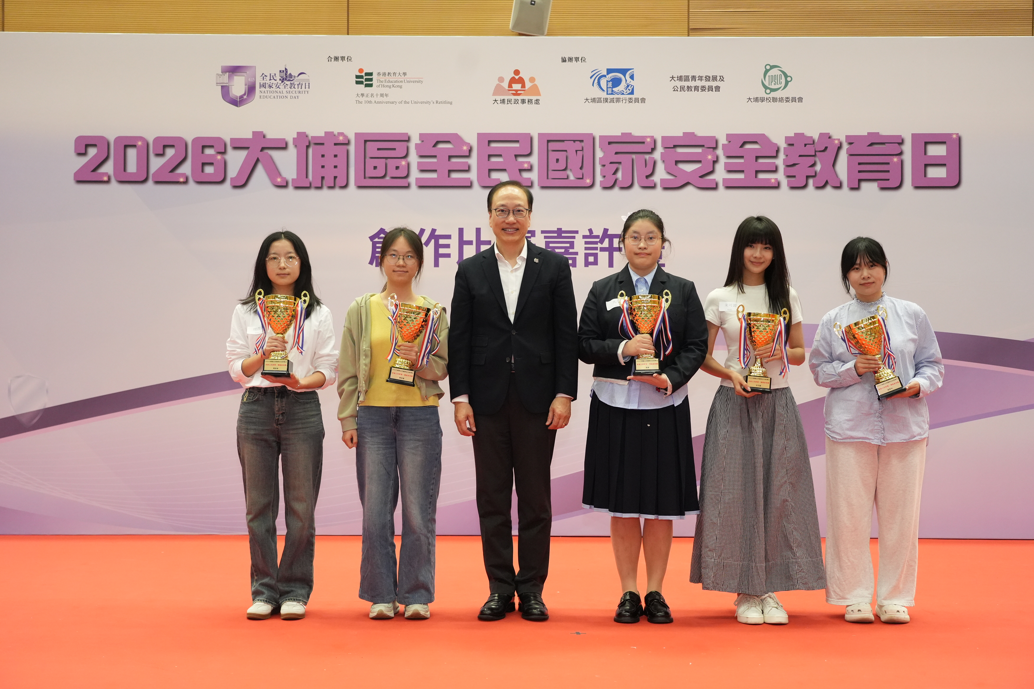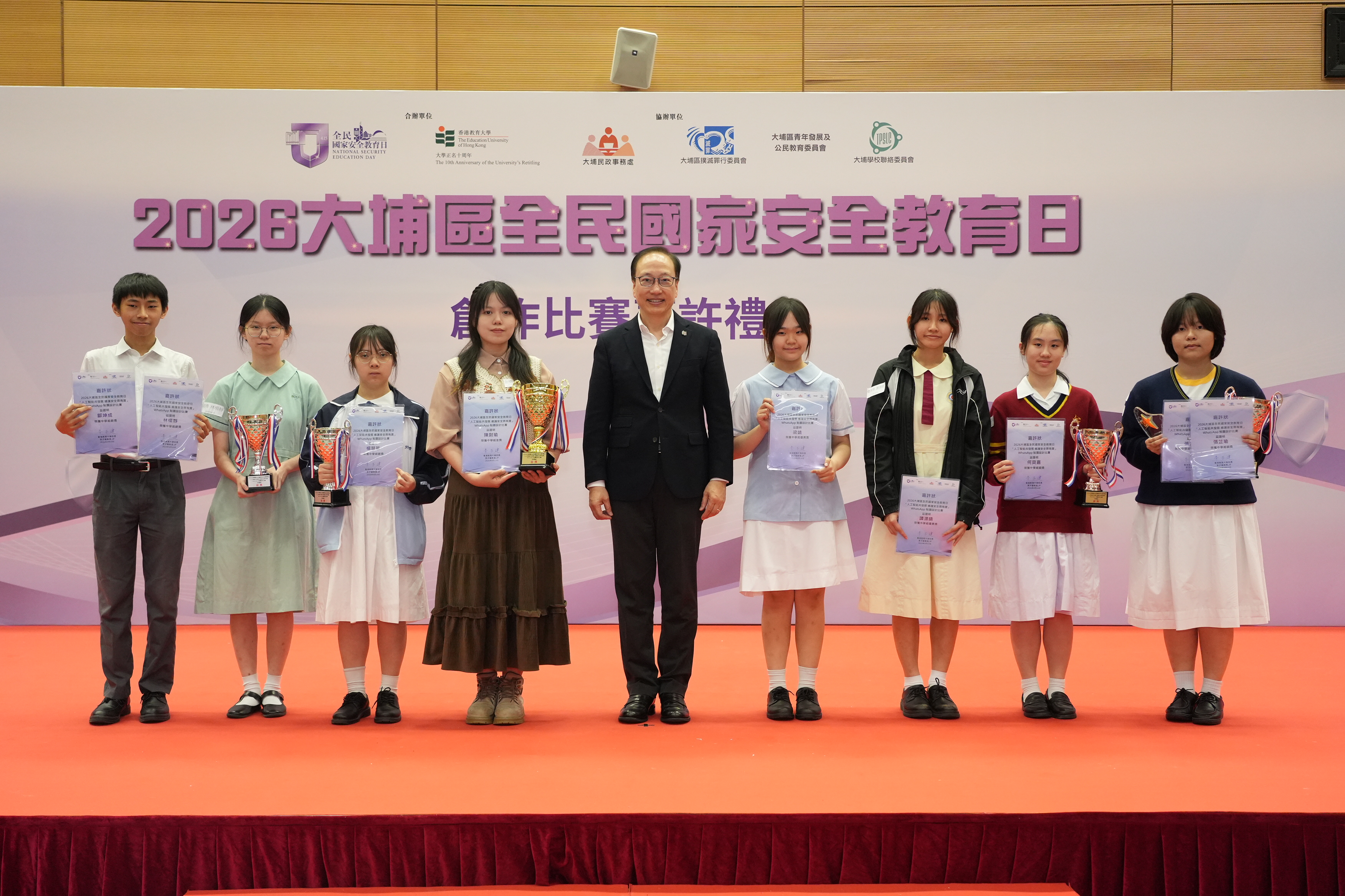 香港教育大學(教大)聯同大埔民政事務處,今日(4月14日)於教大大埔校園舉行「2026年大埔區全民國家安全教育日」創作比賽嘉許禮。活動由大埔區撲滅罪行委員會、大埔區青年發展及公民教育委員會及大埔學校聯絡委員會協辦,透過主題創作比賽、學生表演、TED Talk及創科展覽,推廣國家安全教育,培養學生對國家安全的責任感與公民意識。