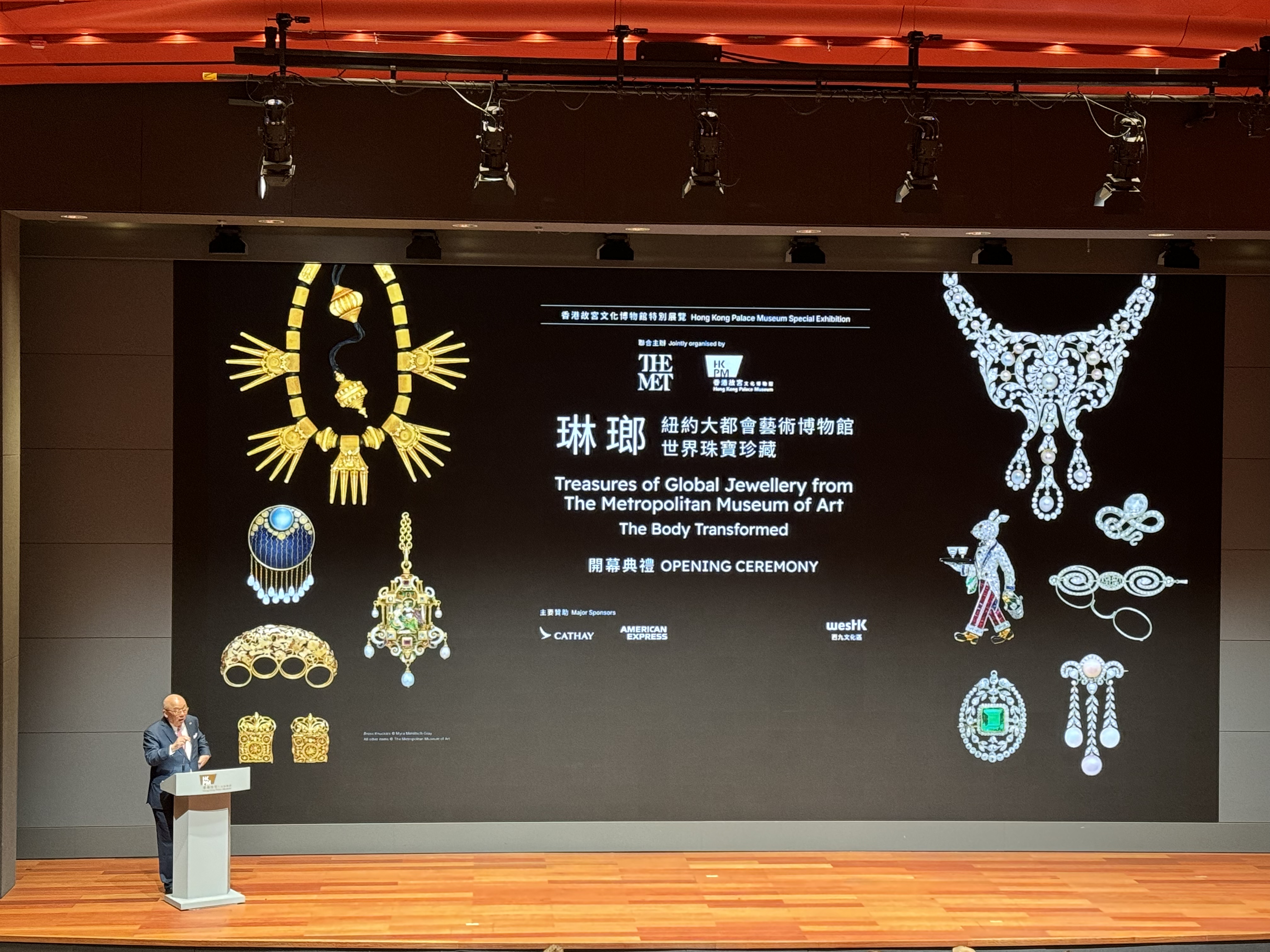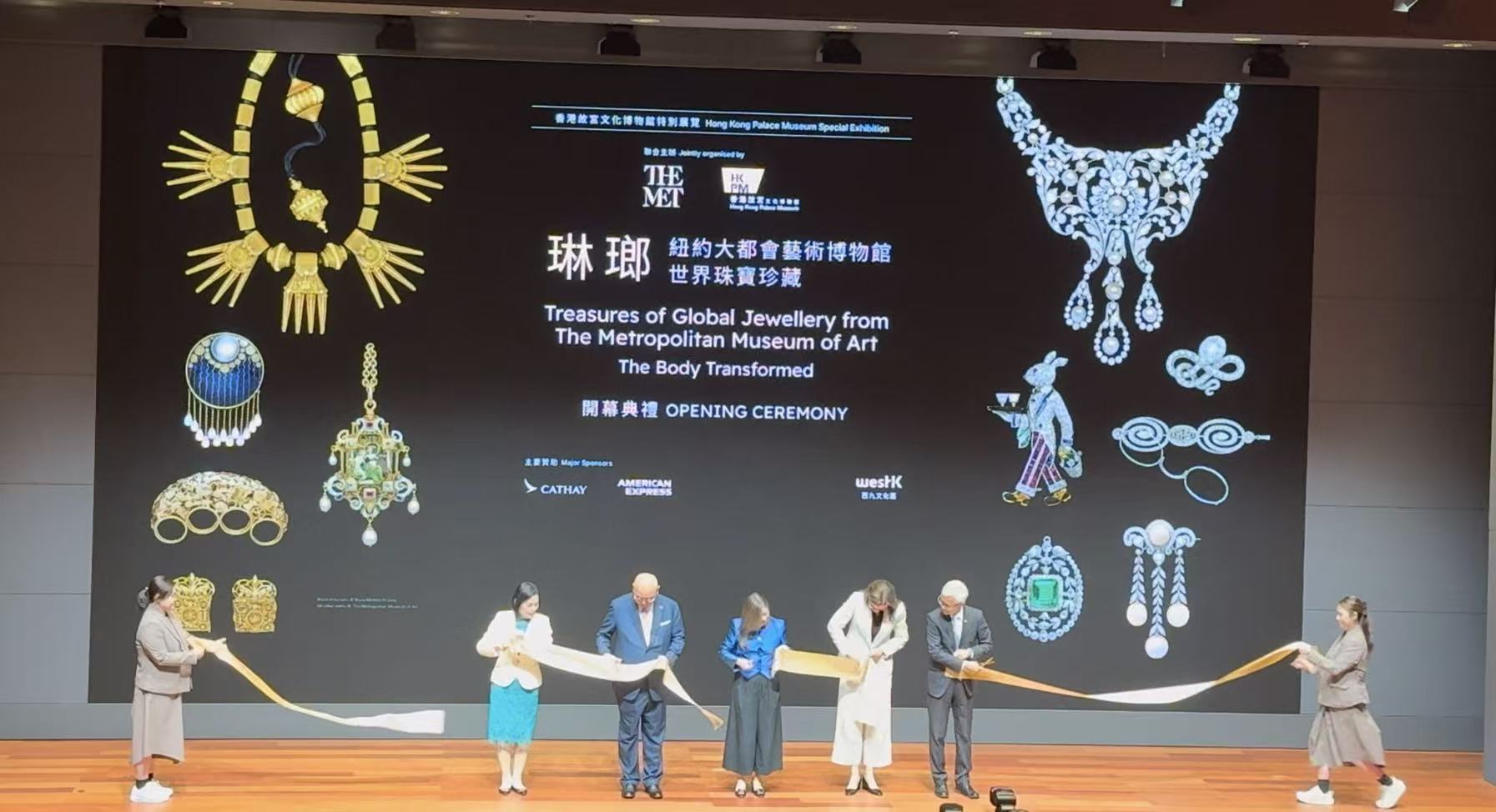 主禮嘉賓隨後上台剪綵,為「琳瑯」珠寶展揭幕。開幕典禮最後播放影片介紹展覽珍品。