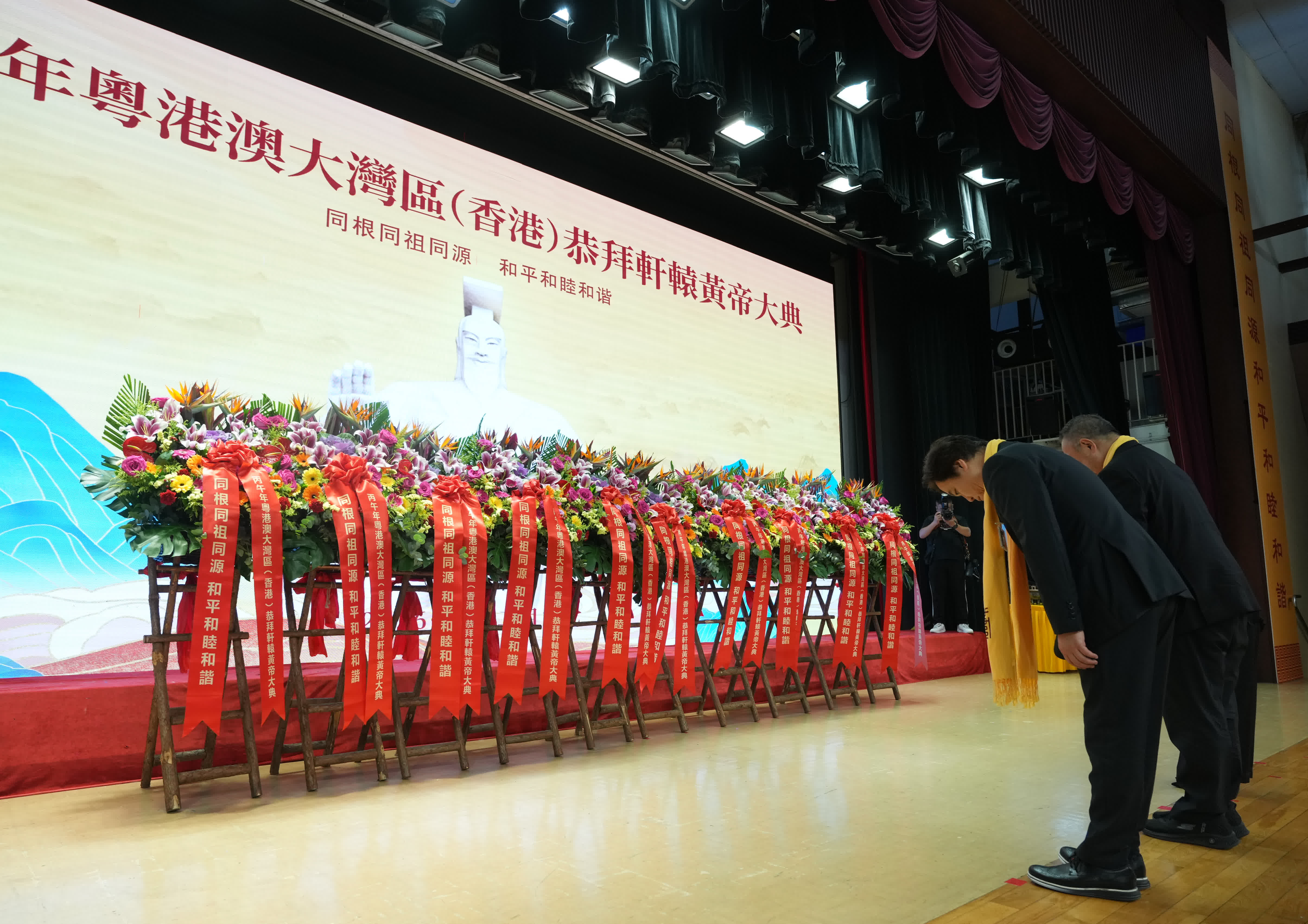 (大公報 記者 劉毅)為了加深粵港澳大灣區民眾對人文始祖軒轅黃帝文化的認識,便於海內外華人拜祖祈福,由香港周口聯誼會、香港梅州聯會、香港兩岸客家聯會、香港河南總商會、河南省客家聯合會聯合主辦的「丙午年粵港澳大灣區(香港)恭拜軒轅黃帝大典」今日上午10點在尖沙咀會堂舉行,拜祖大典以「同根同祖同源 和平和睦和諧」為主題,500位嘉賓聚首一堂,共同恭拜中華文明始祖軒轅黃帝。