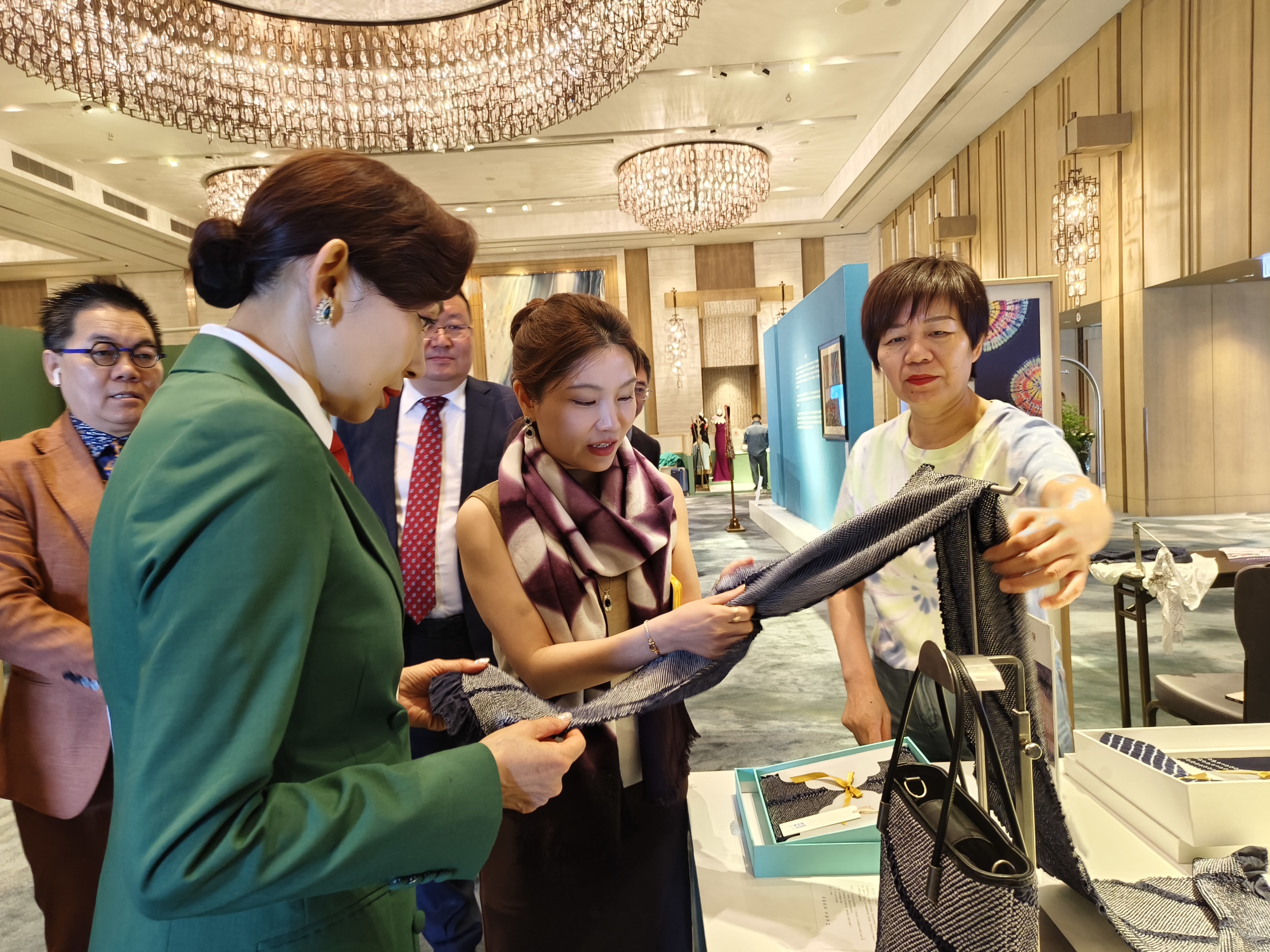 (大公文匯網記者賀鵬飛香港報道)4月14日至15日,「錦繡江蘇—經緯裏的江南」展覽展銷在香港嘉裏酒店舉行。南京雲錦、宋錦、緙絲、蘇綉、漳緞、吳羅、扎染、藍印花布等江蘇「非遺」精品組團空降香港,吸引一眾香港嘉賓和市民參觀選購。前來出席活動的第十四屆港區全國人大代表、鄺美雲珠寶有限公司董事長鄺美雲不禁當場「血拚」。