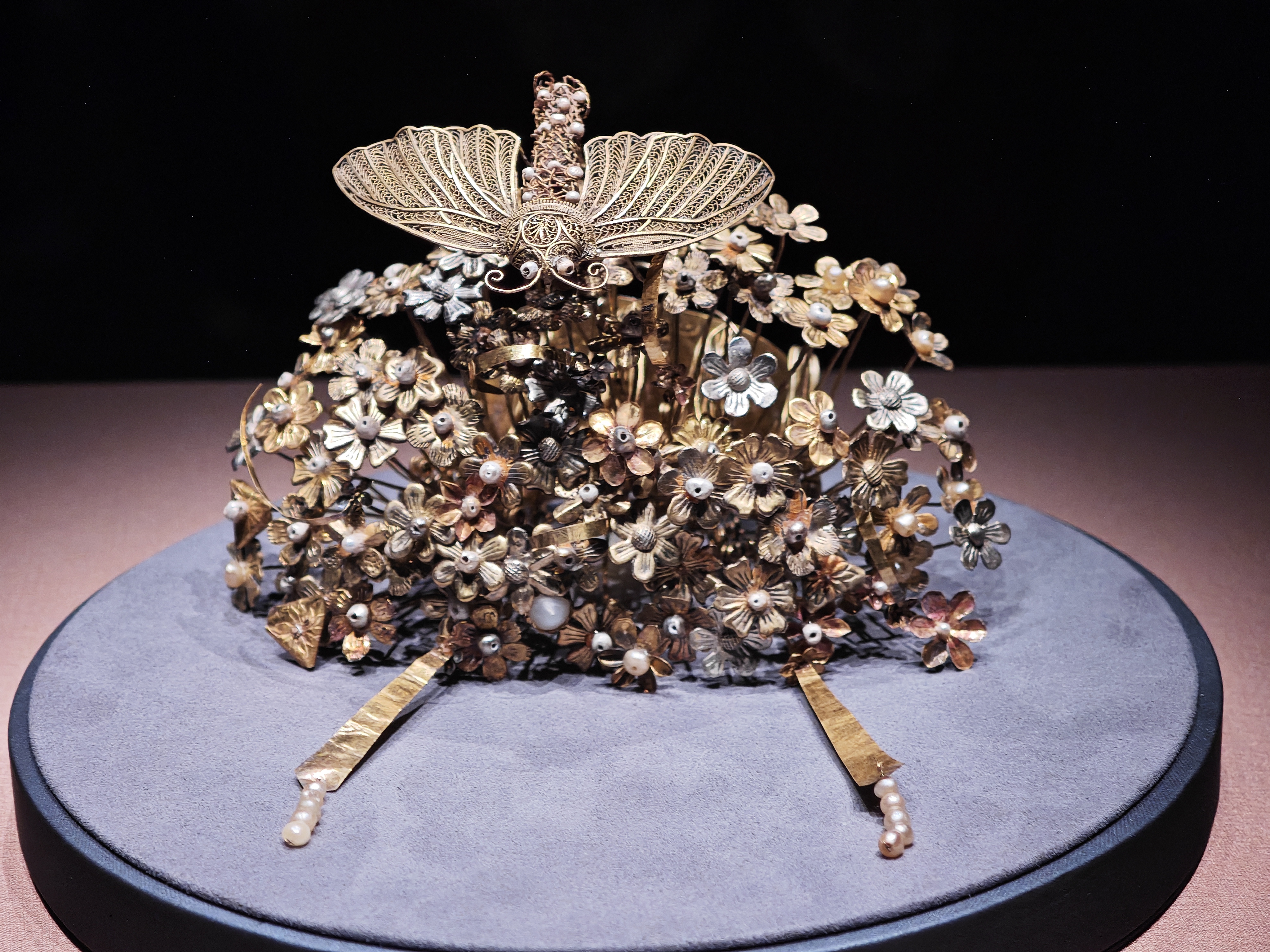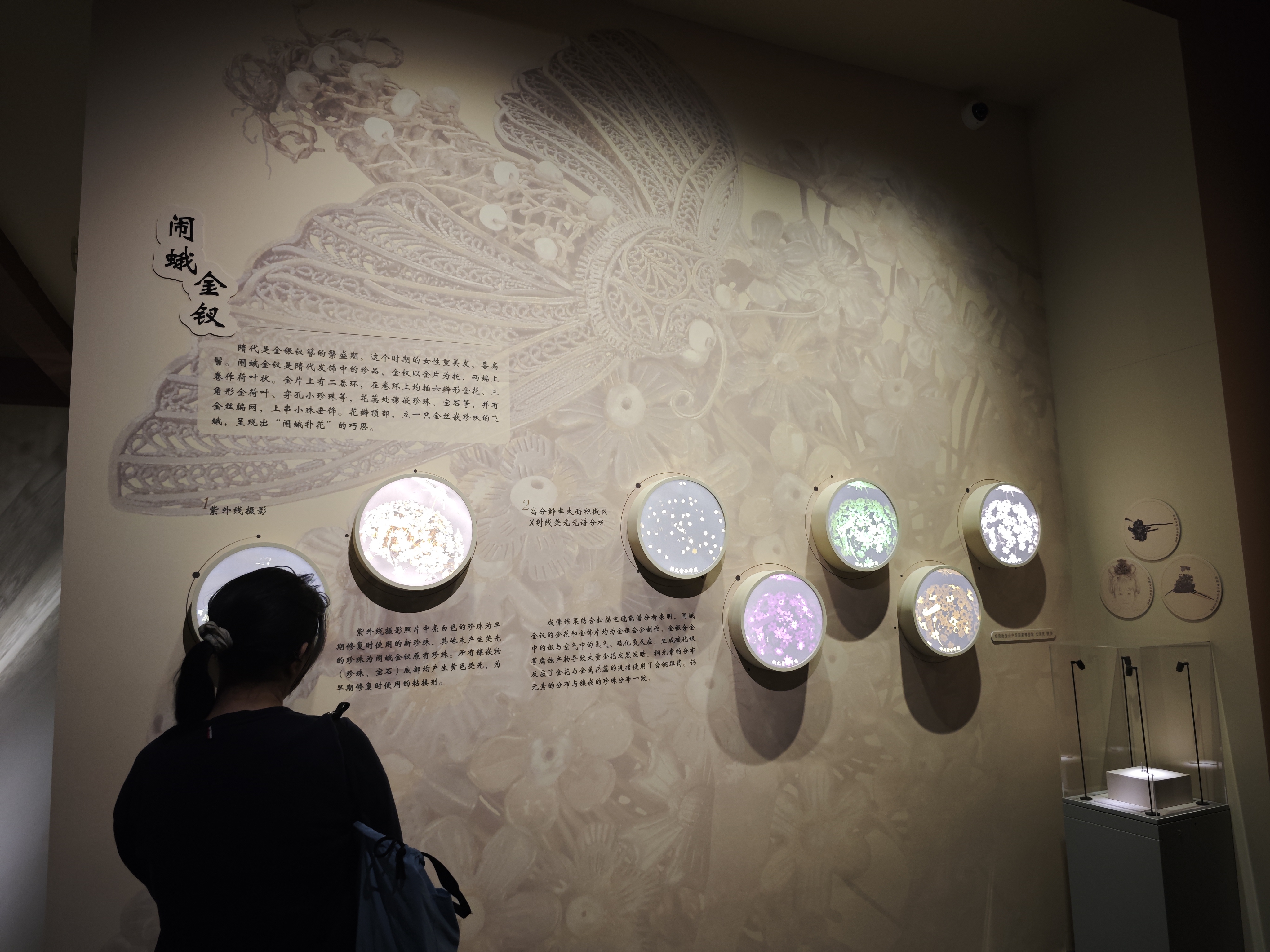 「這是釵,不是冠。」趙玉亮解釋道,今次展覽還配套展出了釵腳殘件。讓觀眾可以更直觀地了解金釵佩戴方式。「開展以來,有些人為了看到金釵花叢、飛蛾顫動的瞬間,會跺腳,甚至拍展櫃玻璃,這種做法不利於文物安全,也呼籲觀眾文明觀展。」
