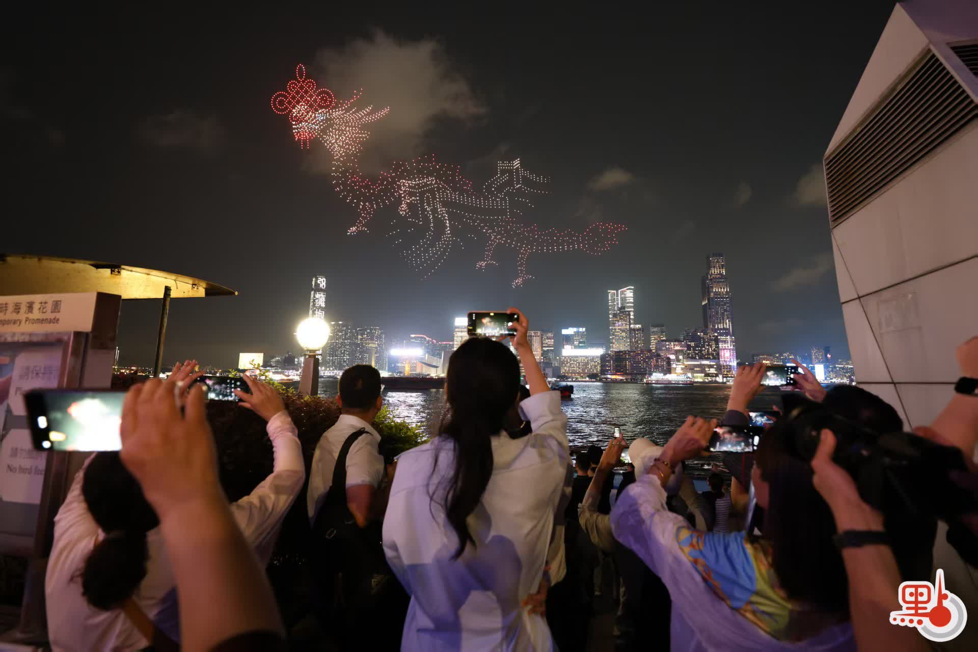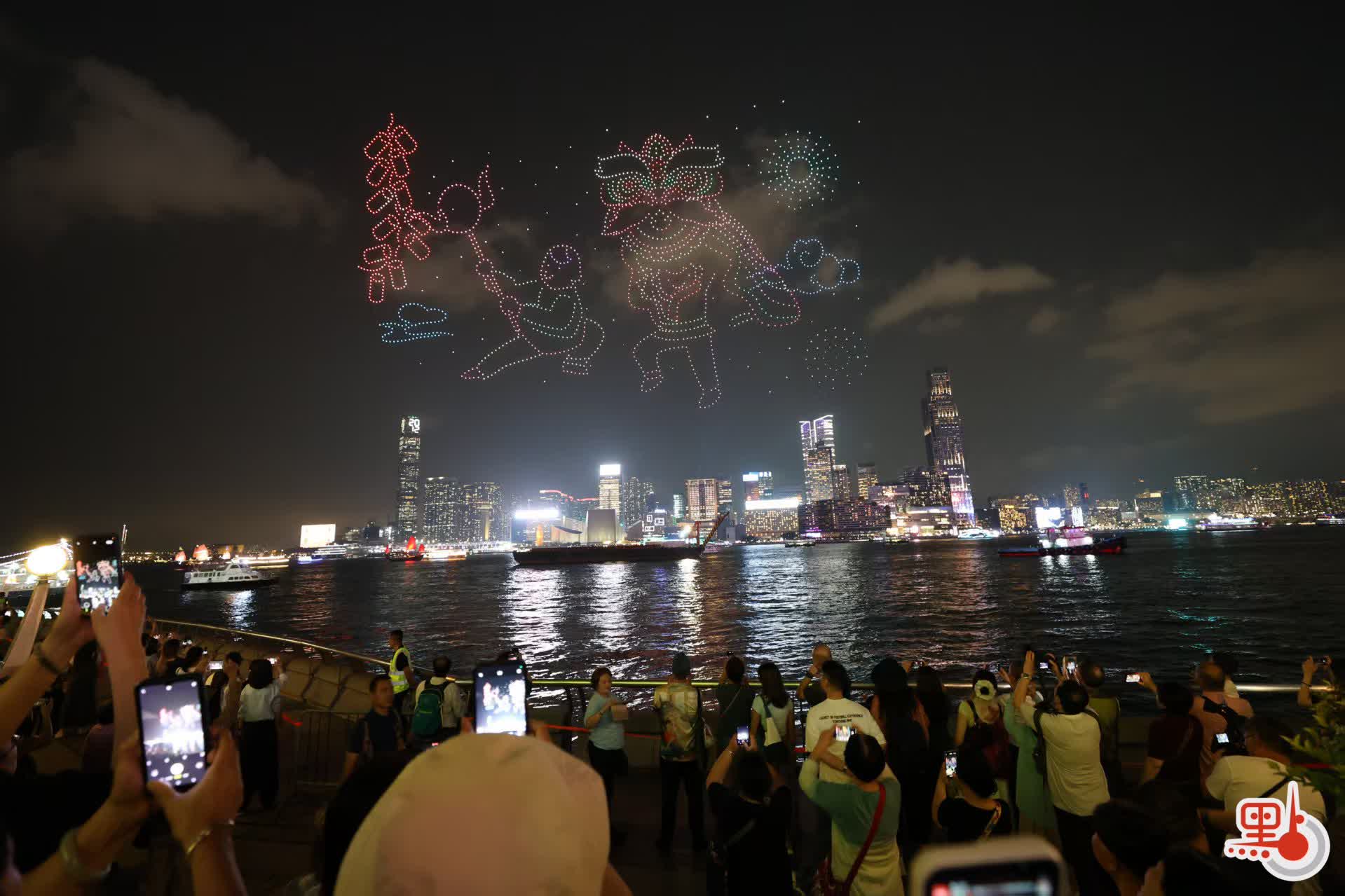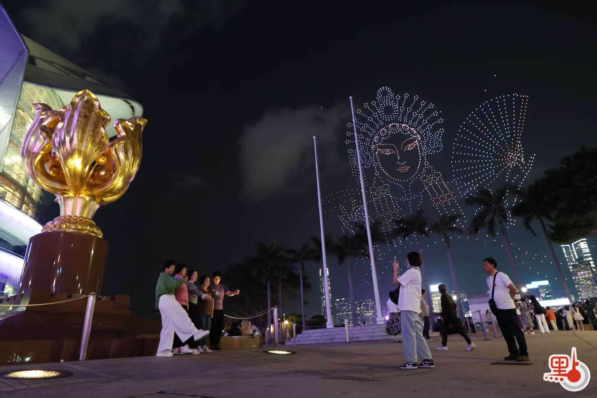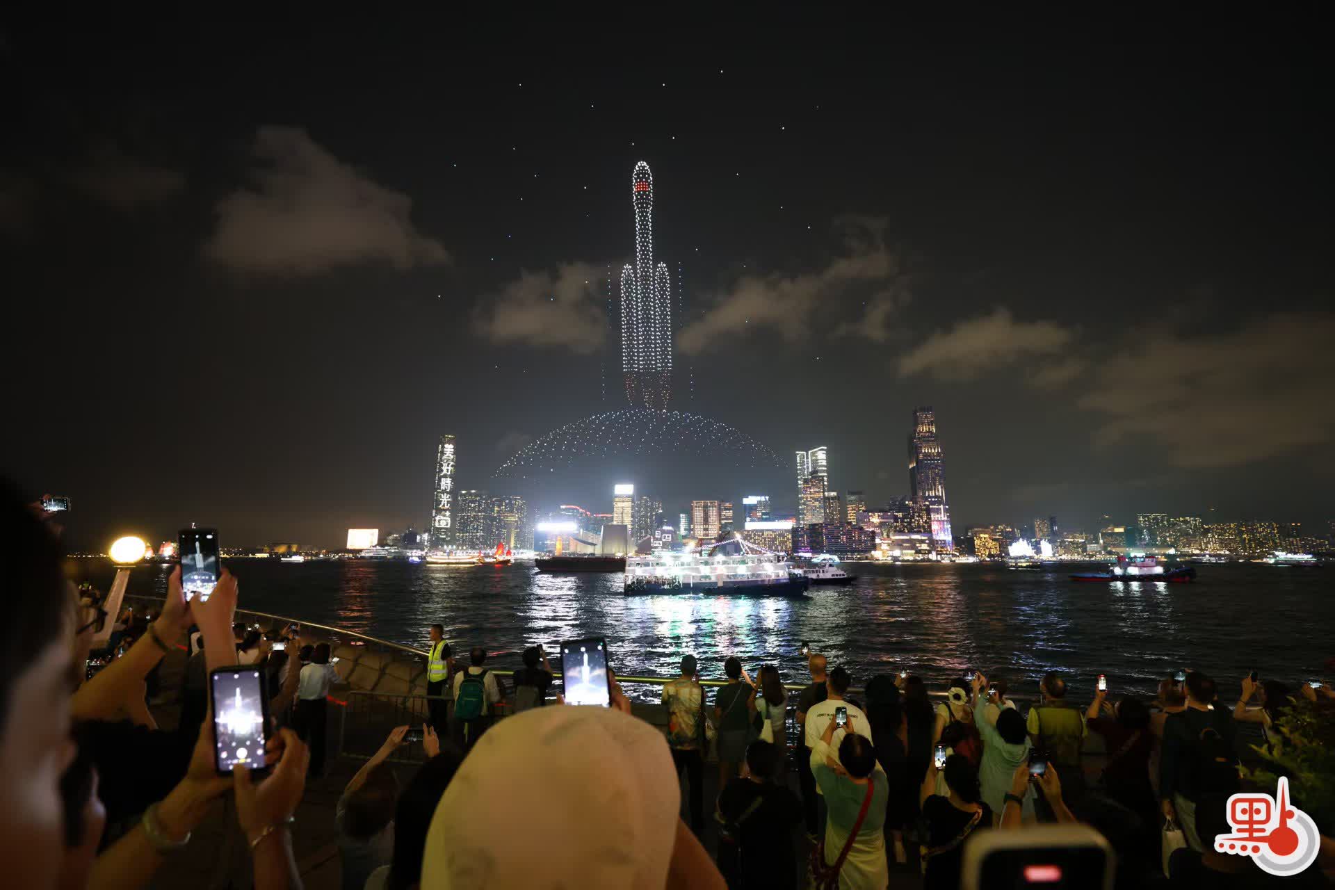 大公文匯全媒體報道,今日(15日)是「全民國家安全教育日」,紫荊文化集團在灣仔舉行大型無人機表演,增強市民大眾的國家安全意識。表演分為兩場,分別在晚上8時及9時半開始,每場約15分鐘,吸引不少觀眾與親友到場觀看及拍照留念。