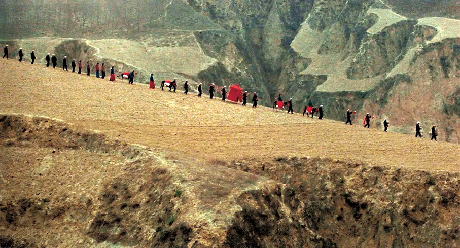 1984年上映的《黃土地》,是陳凱歌的第一部電影,亦是中國電影里程碑式的作品。該作在電影語言方面進行大膽革新,大部分鏡頭採用水平構圖,畫面中大片黃土地佔據主導地位,高地平線顯示了土地的遼闊與厚重。人物通常只佔據畫面的一角,這種強烈的對比給人一種壓迫感,也表達了個體在傳統文化束縛下的無力。「在北京電影學院上課時,有一門課要創作短故事,但不許有對話,所有內容要通過構圖來表達。」陳凱歌說這給了他深刻的啟發,「電影首先是一門視覺藝術,要通過鏡頭來講故事。」