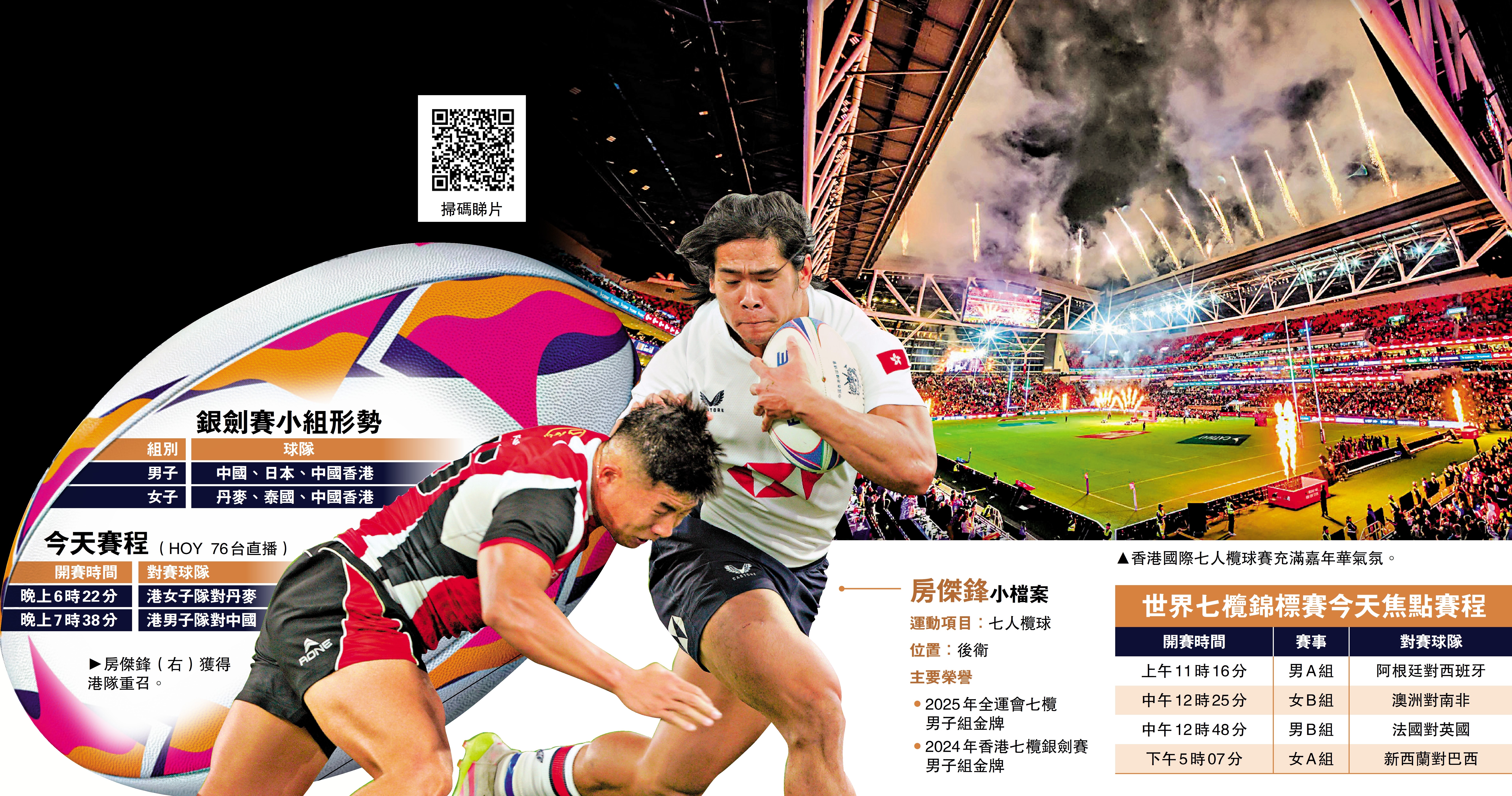 重獲徵召的房傑鋒曾代表港隊出戰去年第15屆全運會,並取得男子組金牌。這位後衛對上一次為港隊出戰國際七欖銀劍賽已是2024年,賽事地點仍是香港大球場。對此,房傑鋒坦言今次將是自己繼全運後第二度在主場館作賽。因為七欖賽事的熱烈氣氛,故他對此感到期待與緊張。