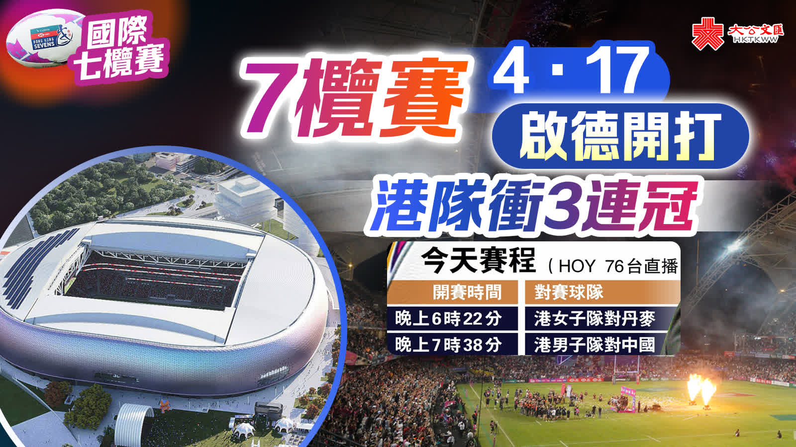 國際七欖賽今年再於主場館舉行,本屆銀劍賽,港男子隊將分別對陣國家隊及日本隊,港女子隊則先後對陣丹麥隊及泰國隊。