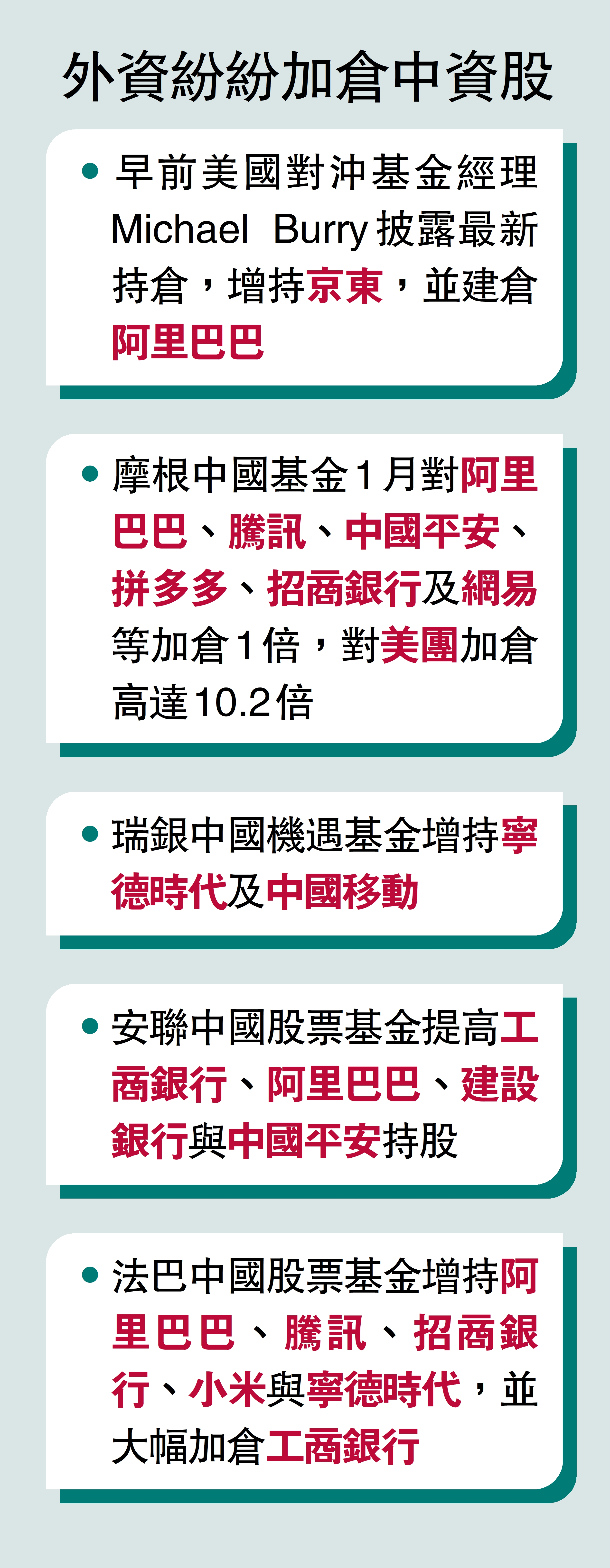 除了法巴外,其他外國投資者和資產管理公司亦看好今年中國股市前景。他們認為持續的科技投資加上中央政策令經濟復甦,將會令中國企業的盈利增加,令中國股市表現出色過人。