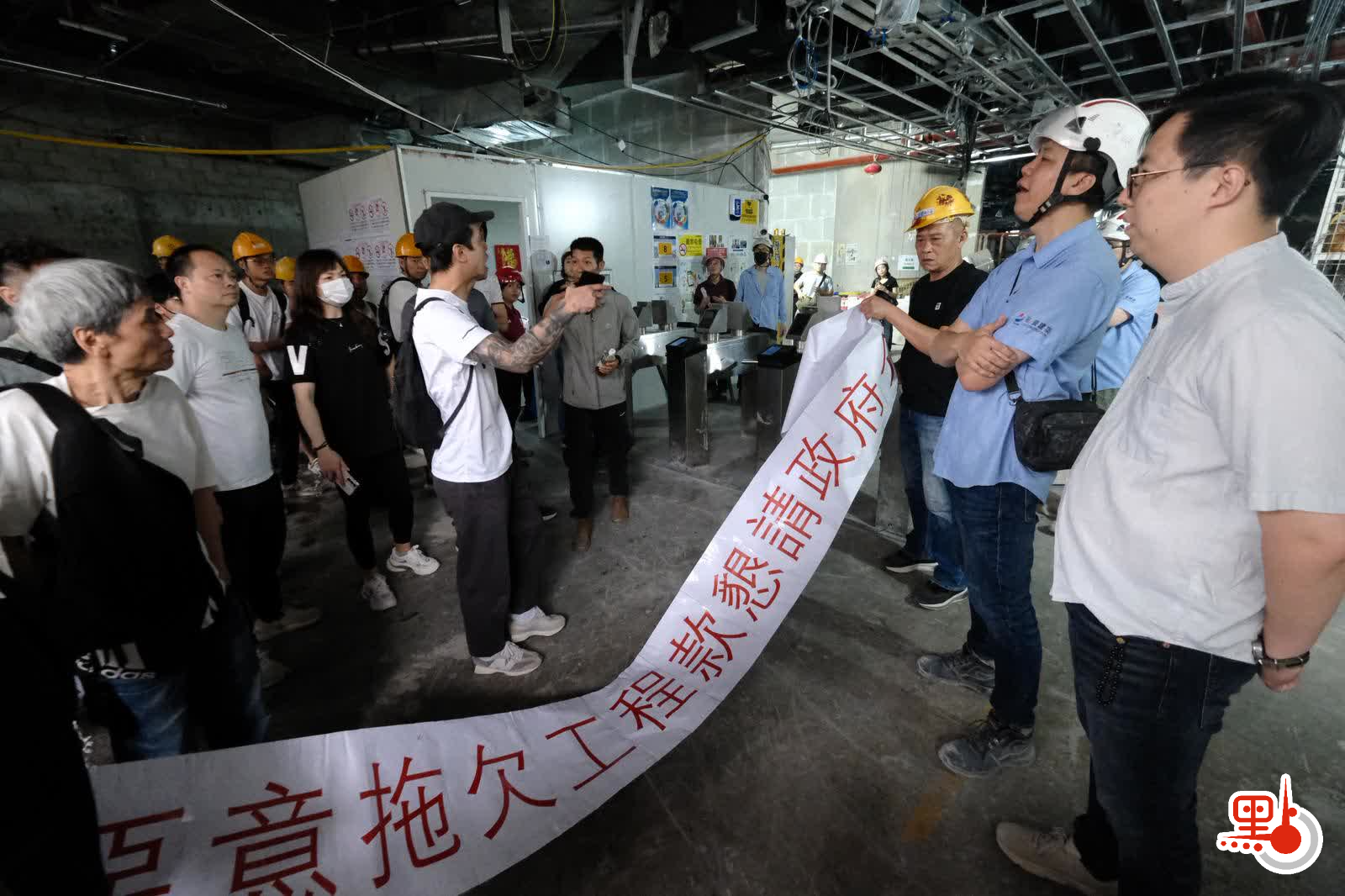 警員接報到場調查期間,一名工人登上約5樓高平台位置危站,消防員需要開啟救生氣墊戒備,但未幾再有6名工人登上平台危險位置拉橫額,消防員需要開啟第二個救生氣墊,警方談判專家到場進行遊說,勞工處人員聯絡相關人士了解處理;警方暫列作「勞資糾紛」案處理。