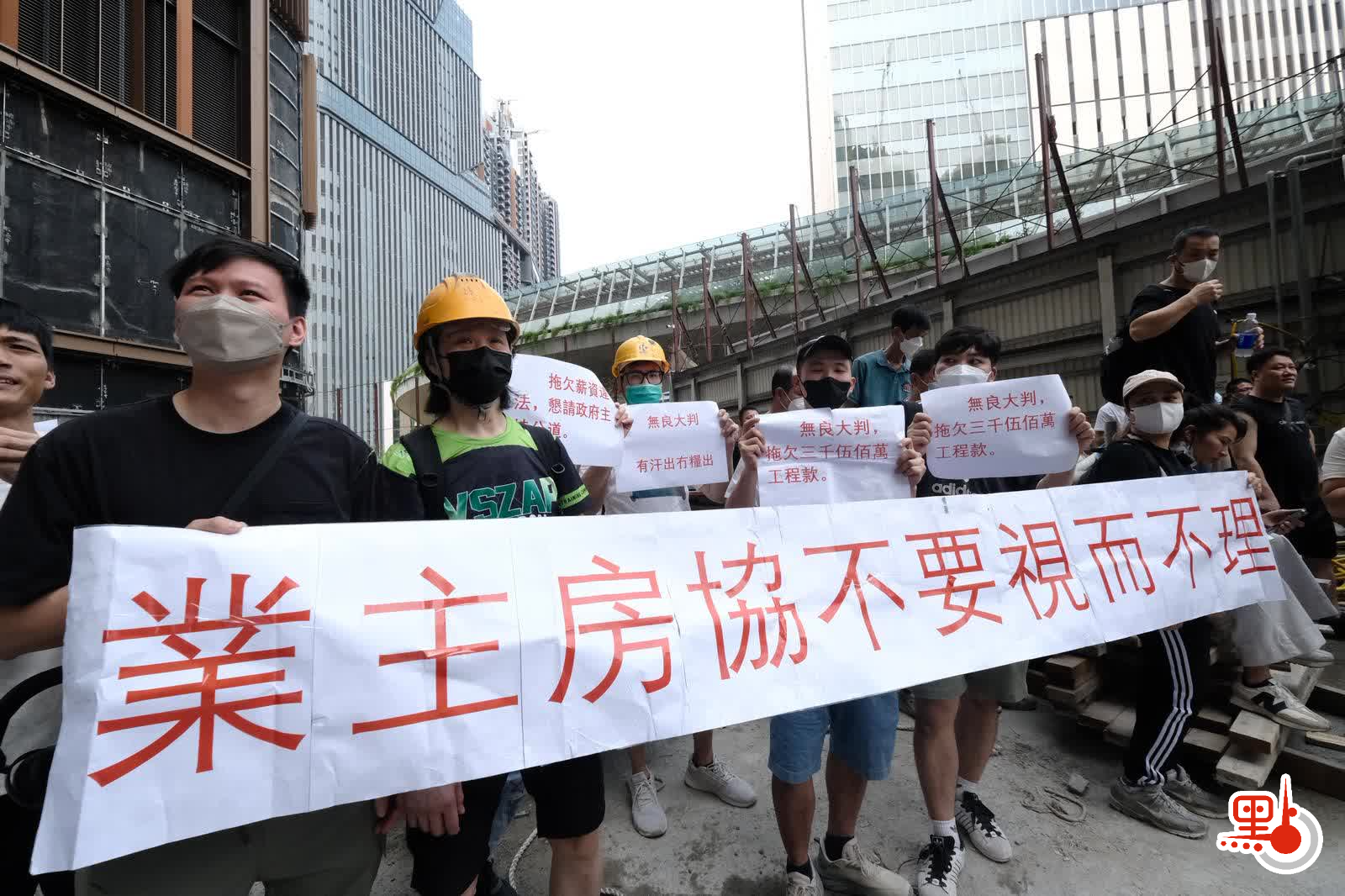 (大公文匯全媒體 記者 蕭景源)今日(17日)早上9時許,逾百名工人到達啟德沐縉街一地盤外聚集持標語及拉橫額追討合共數百萬元欠薪,其間約50名工人進入地盤抗議。