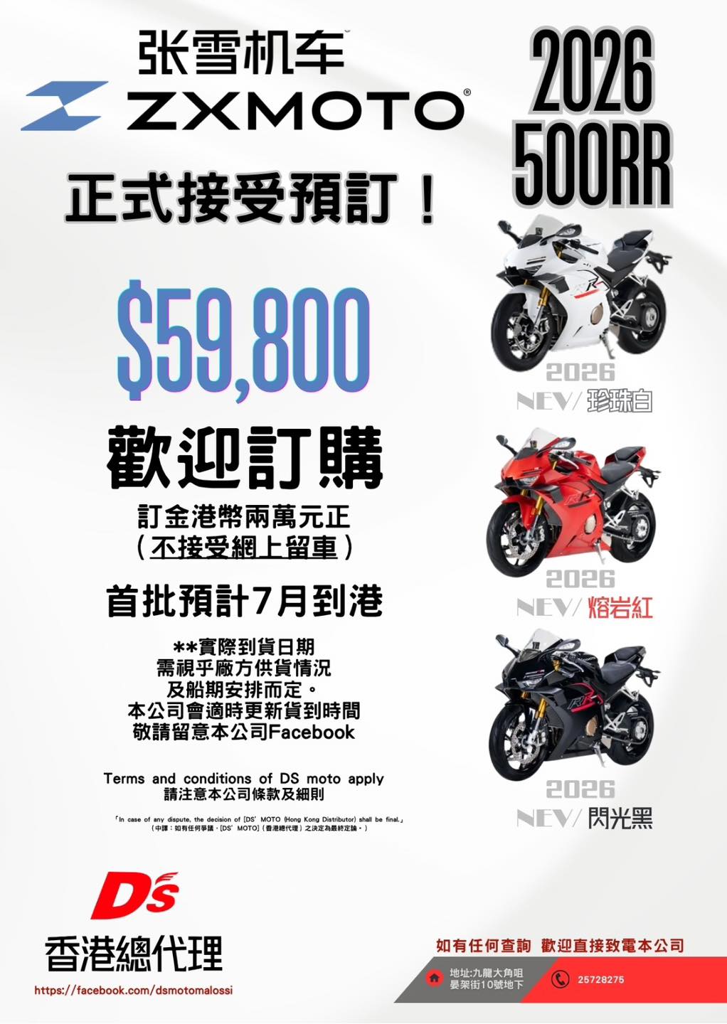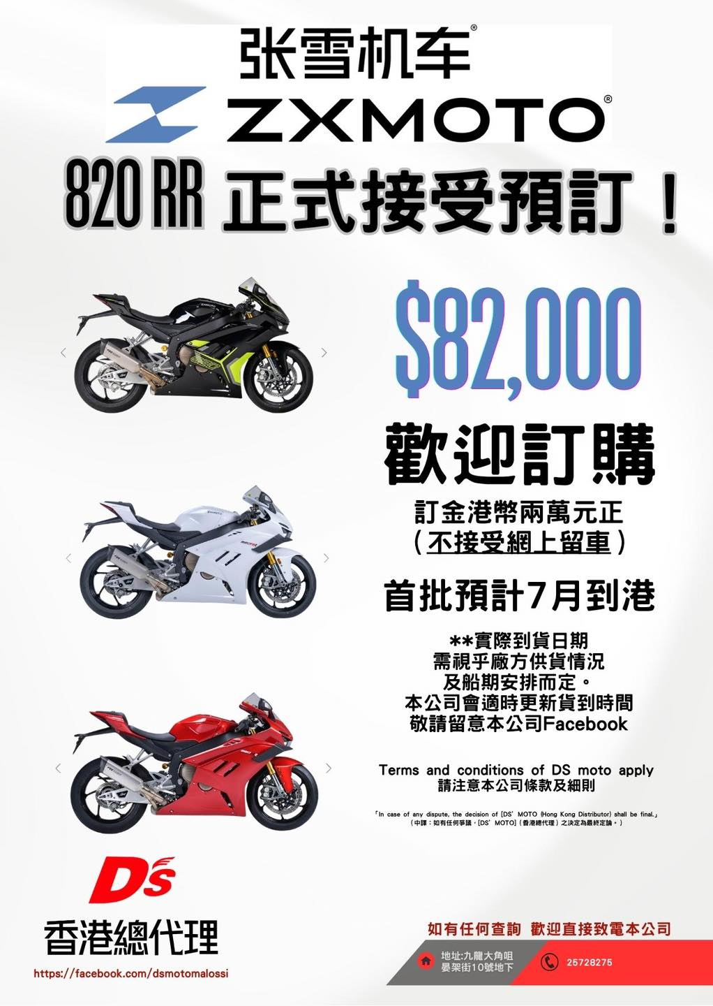 大公文匯全媒體報道,今年4月,張雪機車正式簽約香港總代理,旗下旗艦仿賽820RR以8.2萬港元(約合人民幣7.6萬元)的價格開啟預定,訂金2萬港元,首批已售罄,7月到港,第二批預計8月到港;500RR售價59800港元,訂金2萬港元,首批預計7月到港。