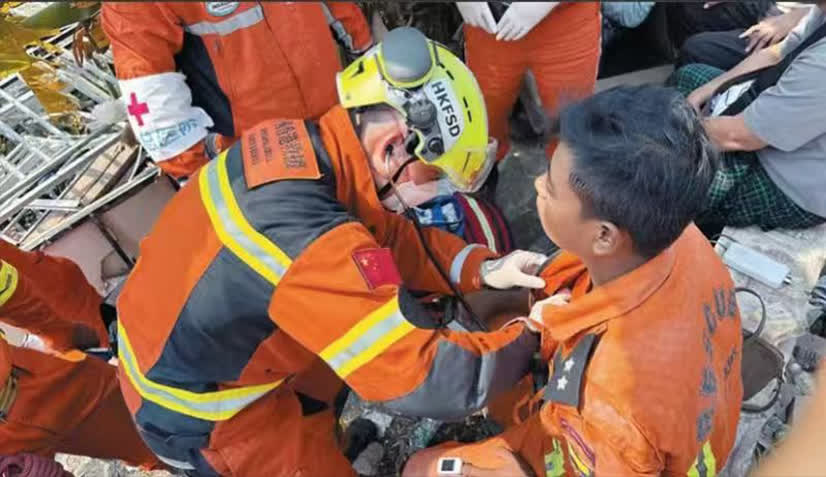 2025年3月28日,緬甸實皆省發生強烈地震,多個地區遭受嚴重破壞,傷亡慘重。香港特區政府迅速響應,保安局、消防處、入境事務處及醫院管理局短時間內組成51人救援隊伍,攜同兩隻搜救犬及專業裝備,日夜兼程趕赴災區。