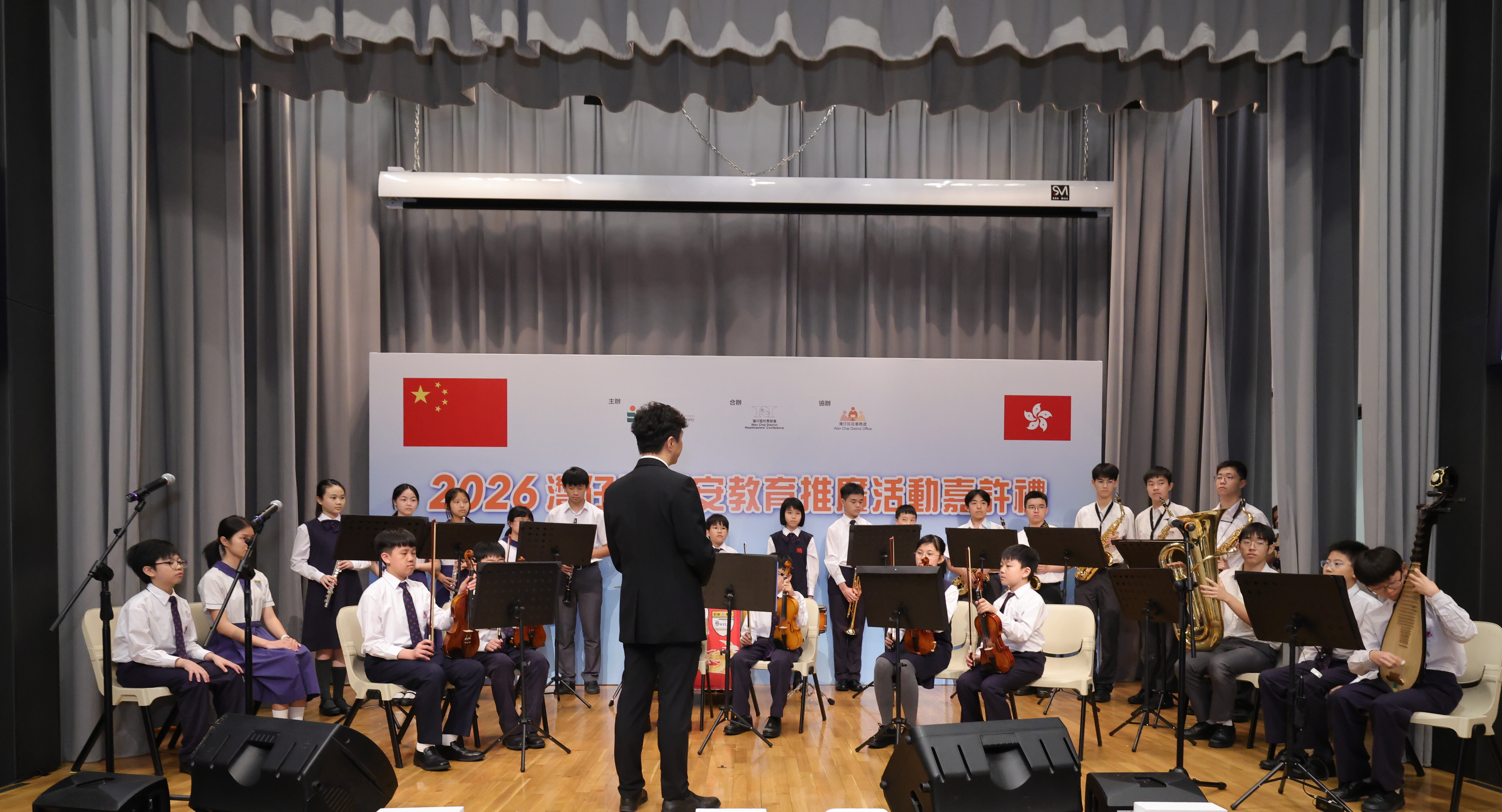 各項比賽頒獎儀式結束後,活動壓軸由軒尼詩官立小學(銅鑼灣)及佛教黃鳳翎中學管弦樂團演奏《龍的傳人》,東華三院李賜豪小學則呈獻武術表演「扇武英雄」,為嘉許禮劃上圓滿句號,既彰顯學生的多元才繭,也展現學校在德育、公民與國民教育方面的付出與成果。