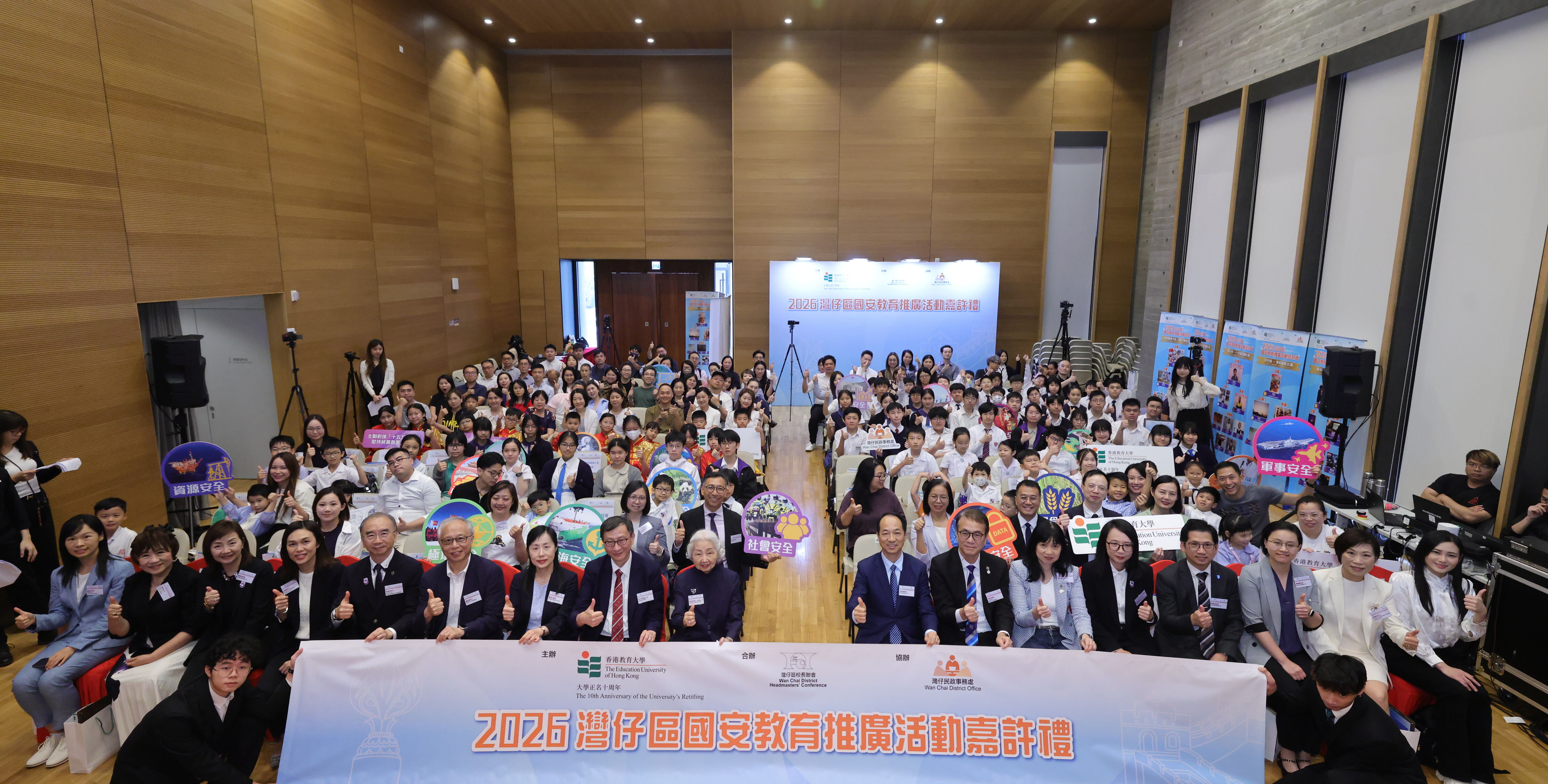 香港教育大學(教大)繼油尖旺、東區及大埔區後,於4月15日聯同灣仔區校長聯會合辦、灣仔民政事務處協辦「2026灣仔區國安教育推廣活動」,是教大本年度協辦的第四個國安教育活動,亦是首次在灣仔區舉行。活動透過填色比賽、一分鐘短講比賽及數碼攝影比賽,推動國家安全教育走進社區,提升區內中、小學及幼稚園學生及家長的國家安全意識。