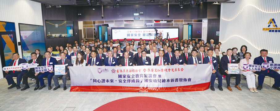 為深入貫徹落實國家安全觀,加強幼兒國家安全教育,香港廣東社團總會(下稱「總會」)、香港廣東社團總會慈善基金特於4月15日「全民國家安全教育日」假潤維創坊隆重舉辦「國家安全教育宣講會暨『同心護未來·安全伴成長』國安幼兒繪本新書發布會」。活動當天,香港特區政府保安局局長鄧炳強,中央政府駐港聯絡辦社團聯絡部副部長胡啟明、九龍工作部副部長郭長勇、新界工作部副部長王卉,在總會及總會慈善基金主席龔俊龍,總會第一執行主席鄧清河,執行主席張廣軍、黃少康,常務副主席兼秘書長吳華江,以及總會常務副主席、慈善基金秘書長葉振南等陪同下出席主禮;警務處副處長簡啟恩應邀擔任主講嘉賓,教育局總課程發展主任(幼稚園及小學)周佩欣擔任繪本介紹嘉賓。現場氣氛熱烈,總會及總會慈善基金首長、鄉親、會員與各界嘉賓友好等數百人聚首一堂,齊心做好國家安全教育宣講,協力促進香港長治久安。